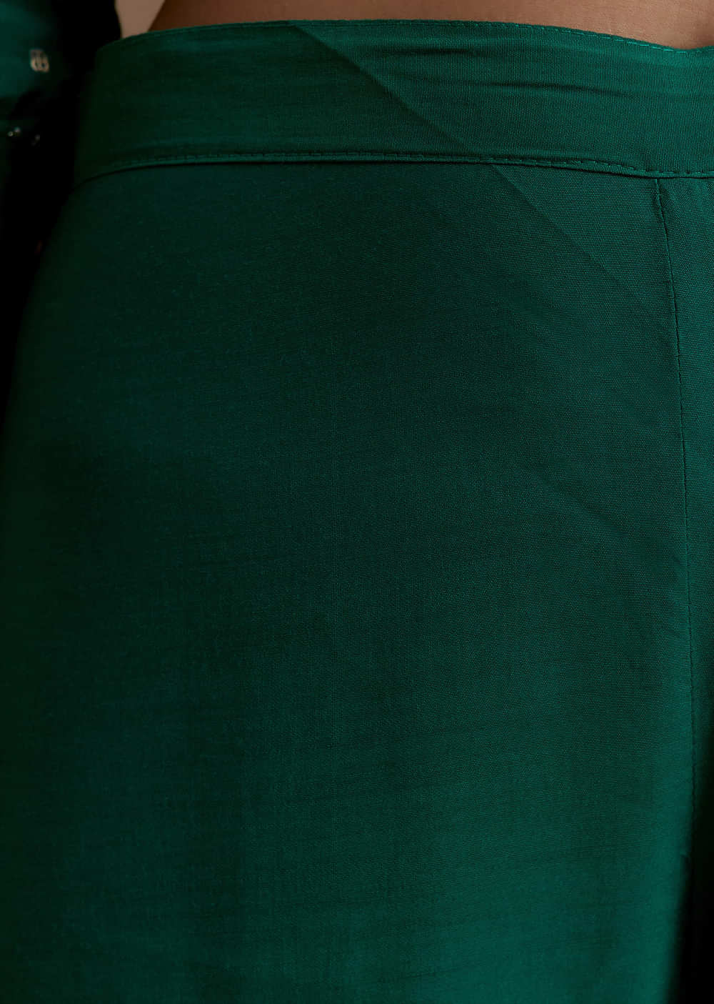Green Cotton Silk Kurta Set with Foil Mirrors