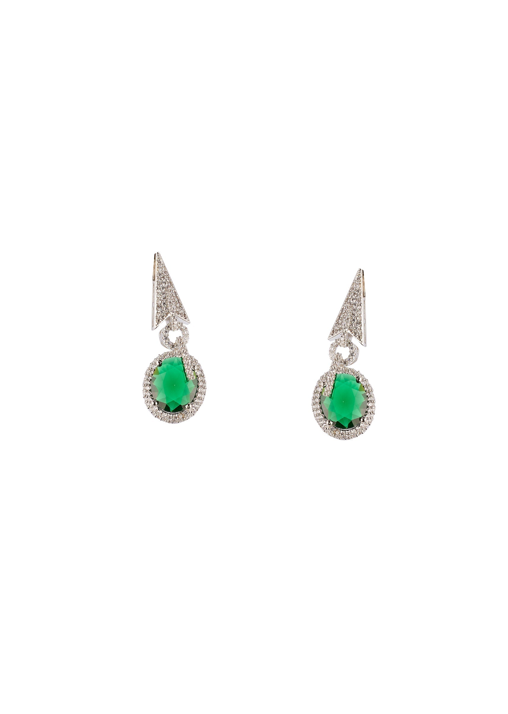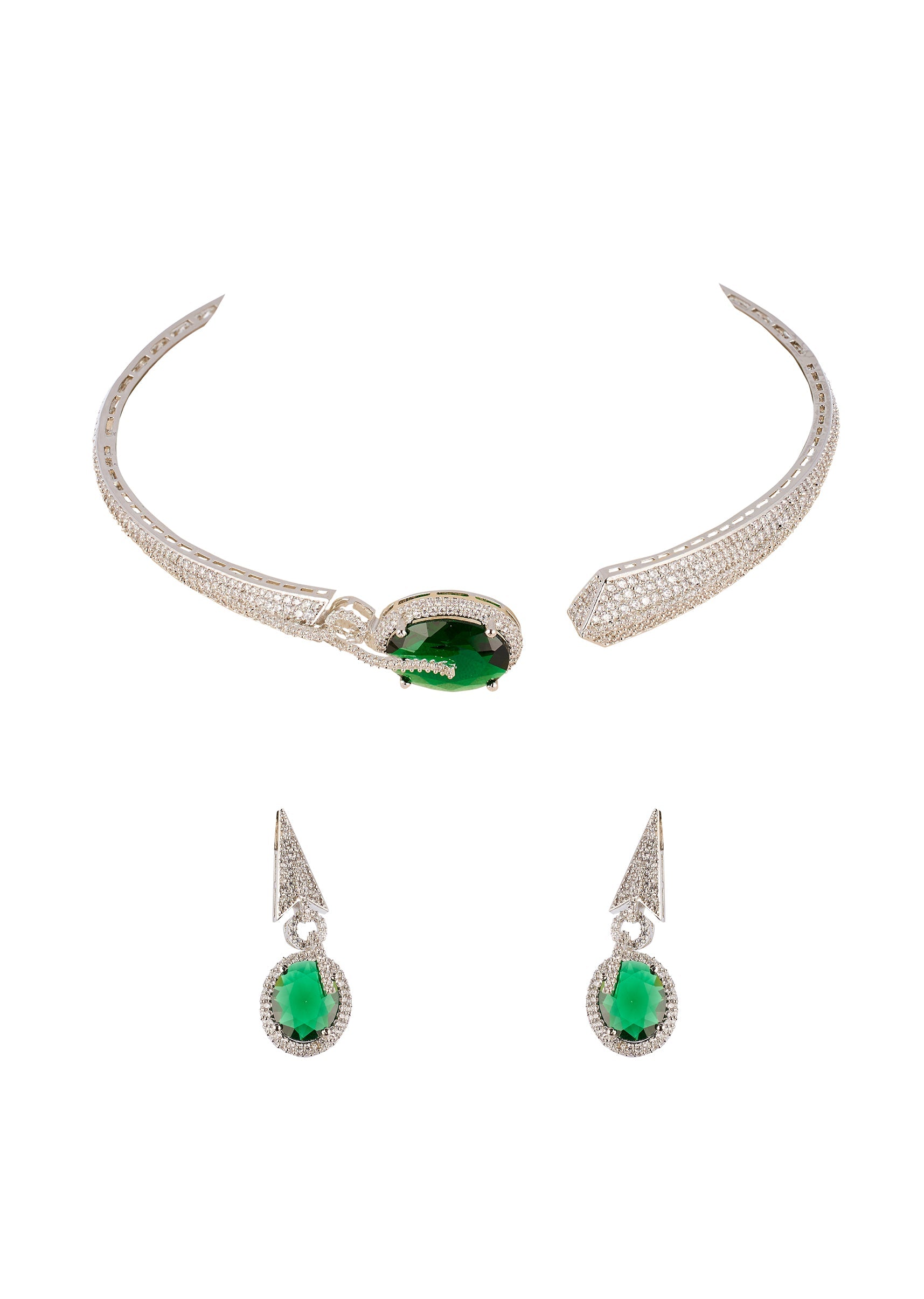 Green CZ Diamond Anti Tarnish Rhodium Plated Gemstone Pendant Necklace Set