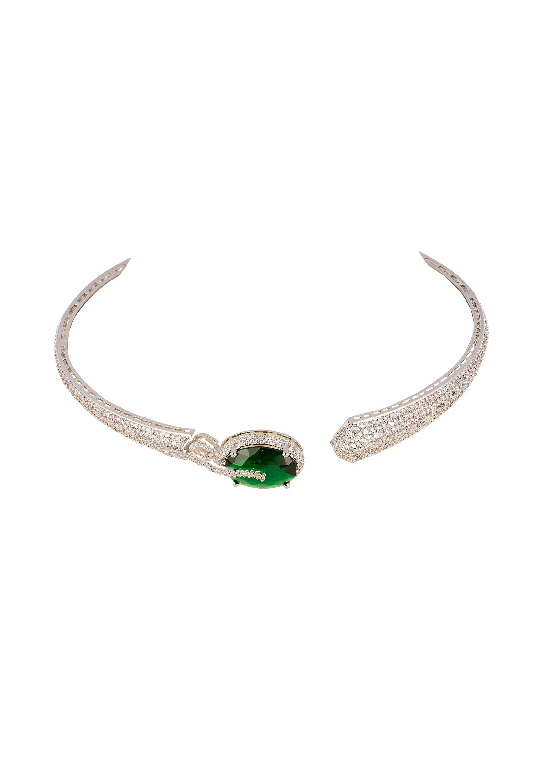 Designed to sparkle with refined elegance, this CZ diamond look necklace set features a radiant arrangement crafted in durable rhodium plated brass with an anti tarnish finish. The necklace and matching earrings are accented with semi precious stones in complementary tones, offering a graceful balance of brilliance and sophistication. Perfect for weddings, festive occasions, and evening celebrations, it adds a timeless glow to any ensemble. Awarded as the Most Trusted Brand, we're delivering styles you love, just as promised.