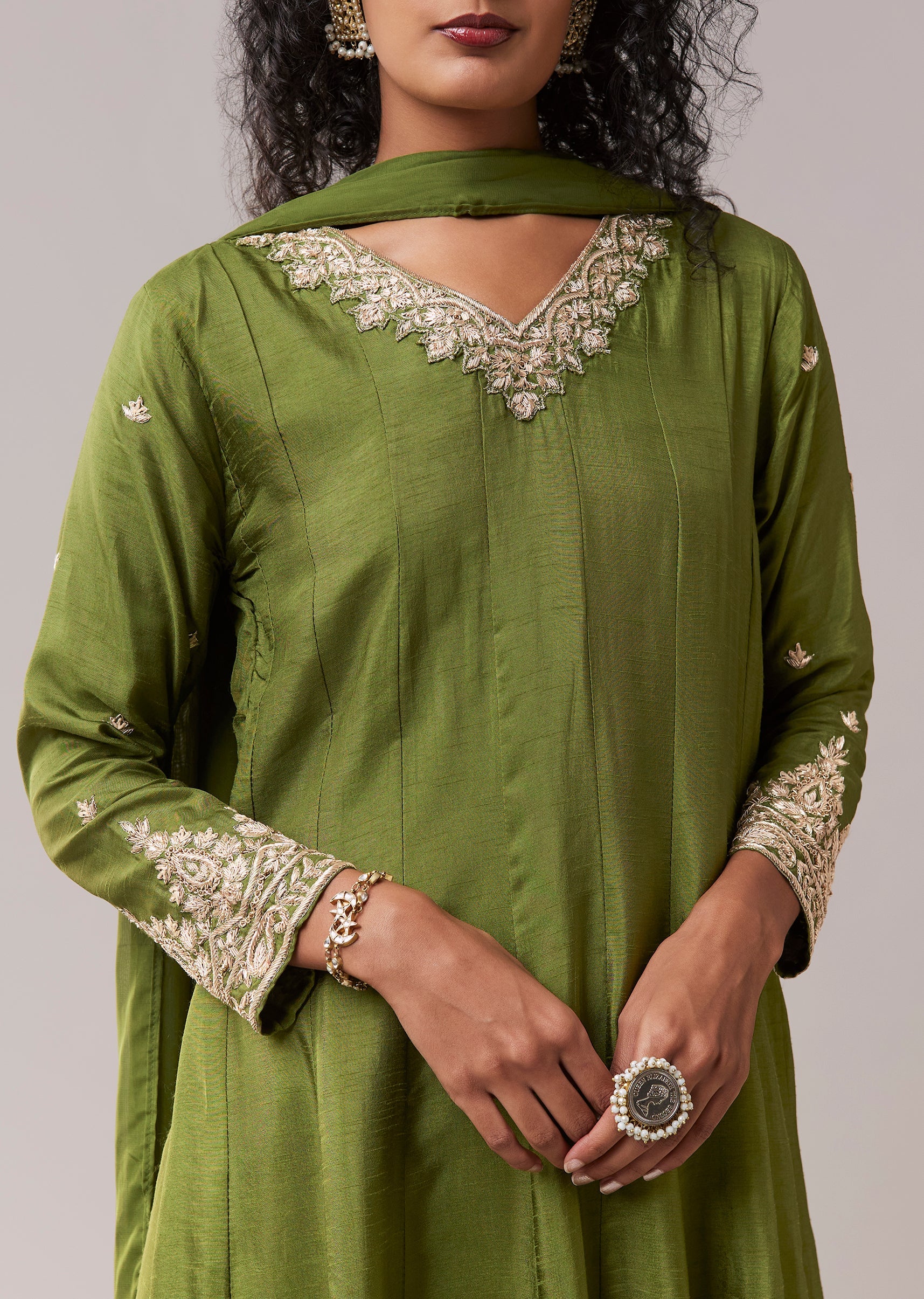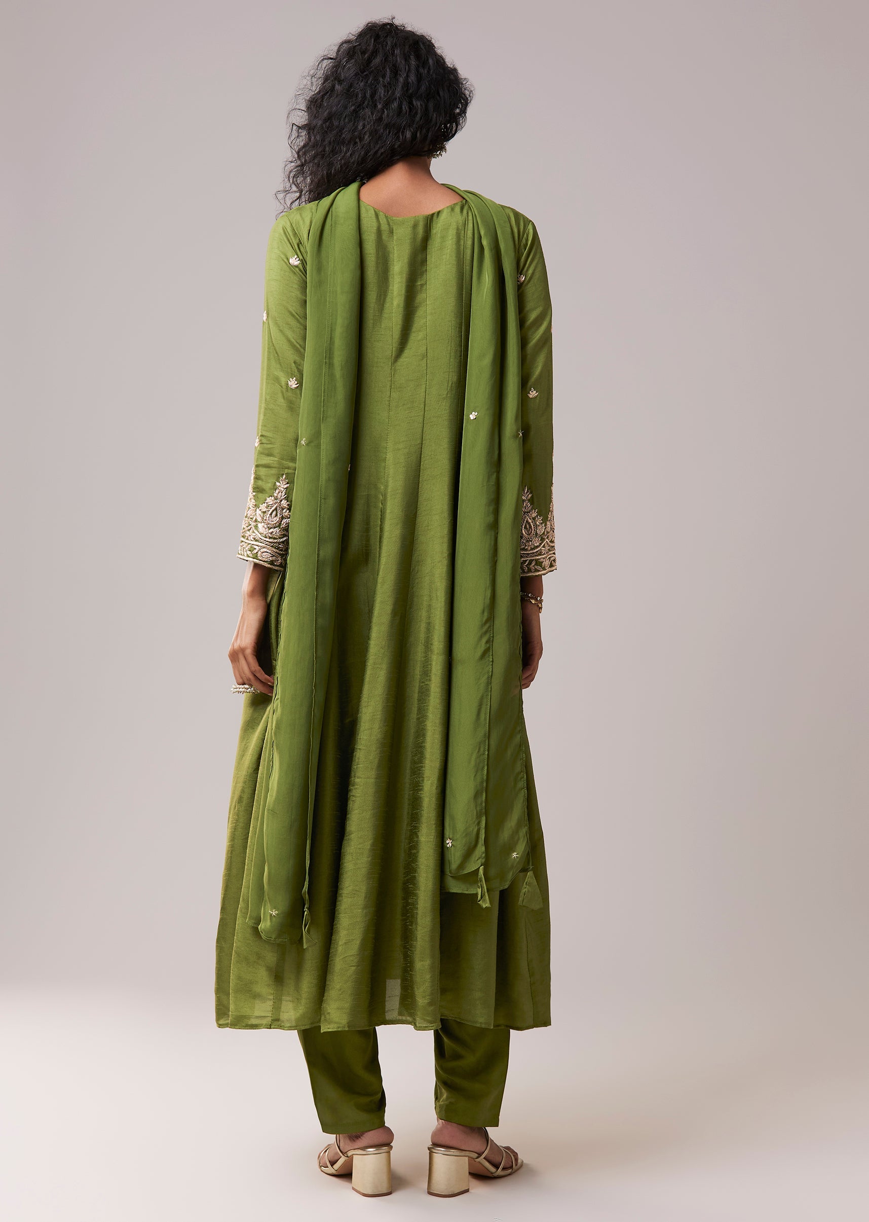 Green Dola Silk Zardozi Embellished Anarkali Pant Set