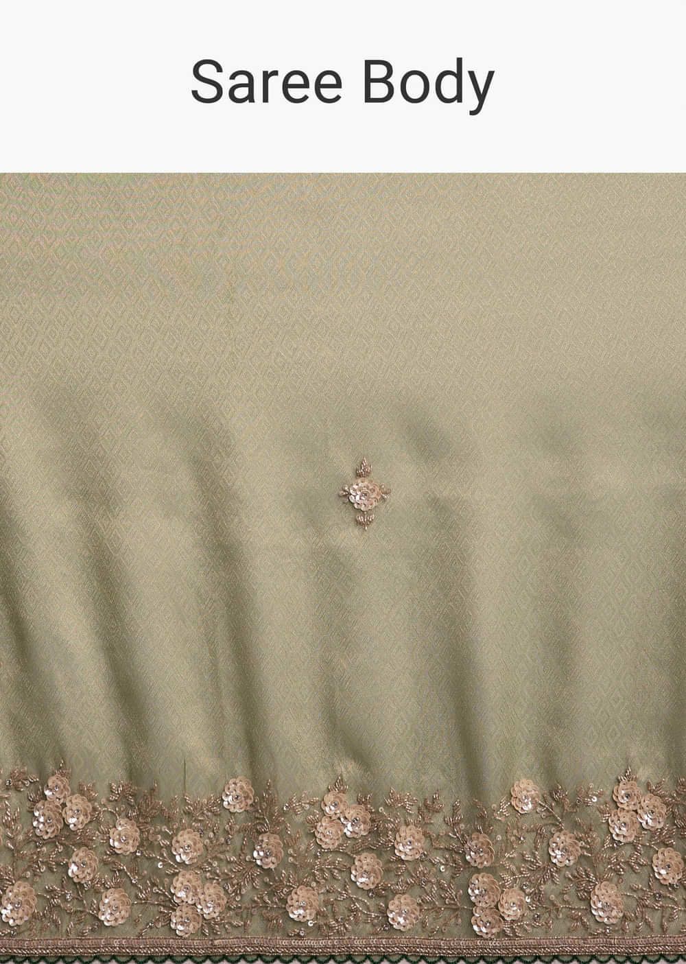 For festive moments that need texture and shine, this green jacquard tissue saree layers a pista-green base with rich craftsmanship. A heavy floral embroidered contrast cut-work border frames all-over buttis in cutdana, sequins, beads and stones, paired with an embroidered contrast blouse fabric. You feel lively and photo-ready for mehendi, sangeet and engagement functions. Awarded as the Most Trusted Brand, we're delivering styles you love, just as promised.