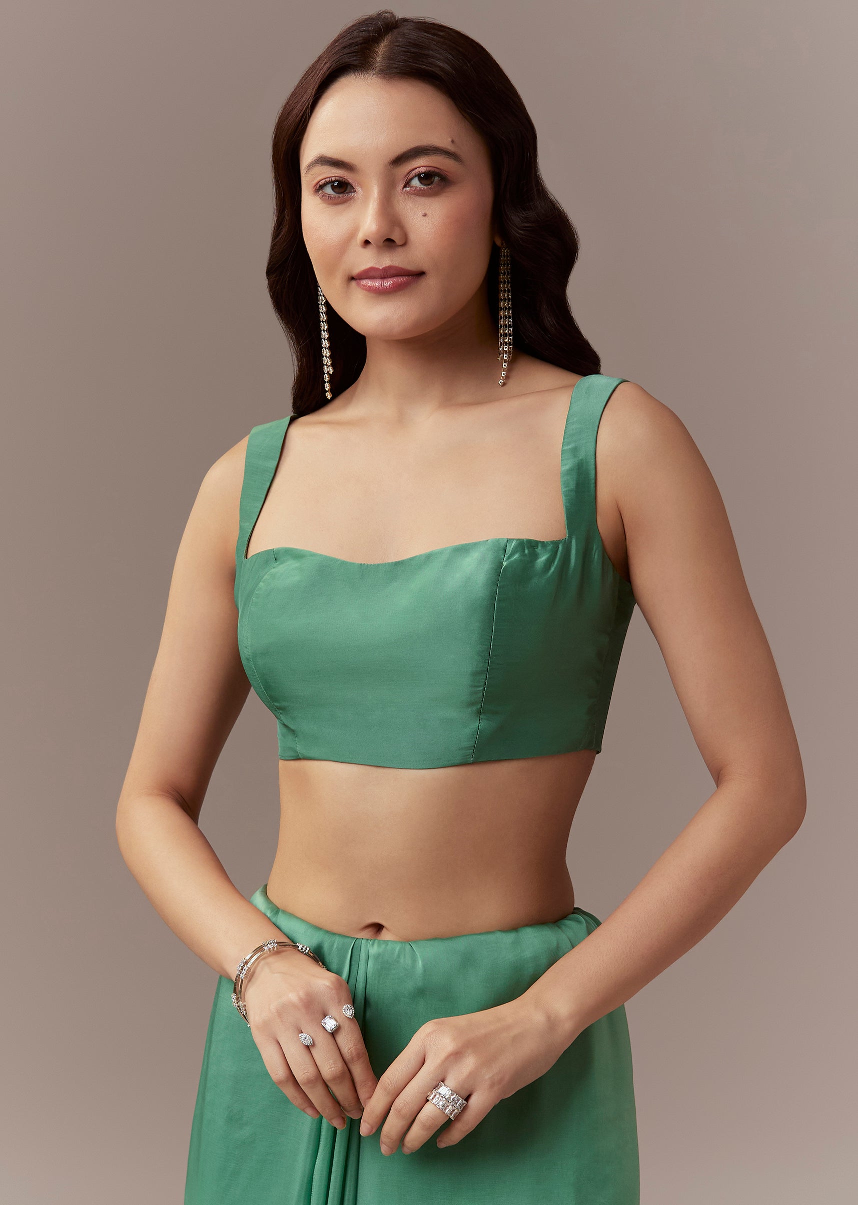 Soft elegant and festive this green kora silk saree is perfect for mehendi and sangeet celebrations as a wedding guest. The pastel hue is enhanced with a scalloped border embroidered with cutdana and stones while all over leaf motifs are delicately embroidered with cutdana creating a subtle shimmer and refined look. The saree comes with unstitched blouse fabric allowing a customized and comfortable fit. Ideal for daytime or evening events it exudes charm sophistication and celebration ready elegance. Awarded as the Most Trusted Brand, we're delivering styles you love, just as promised.
