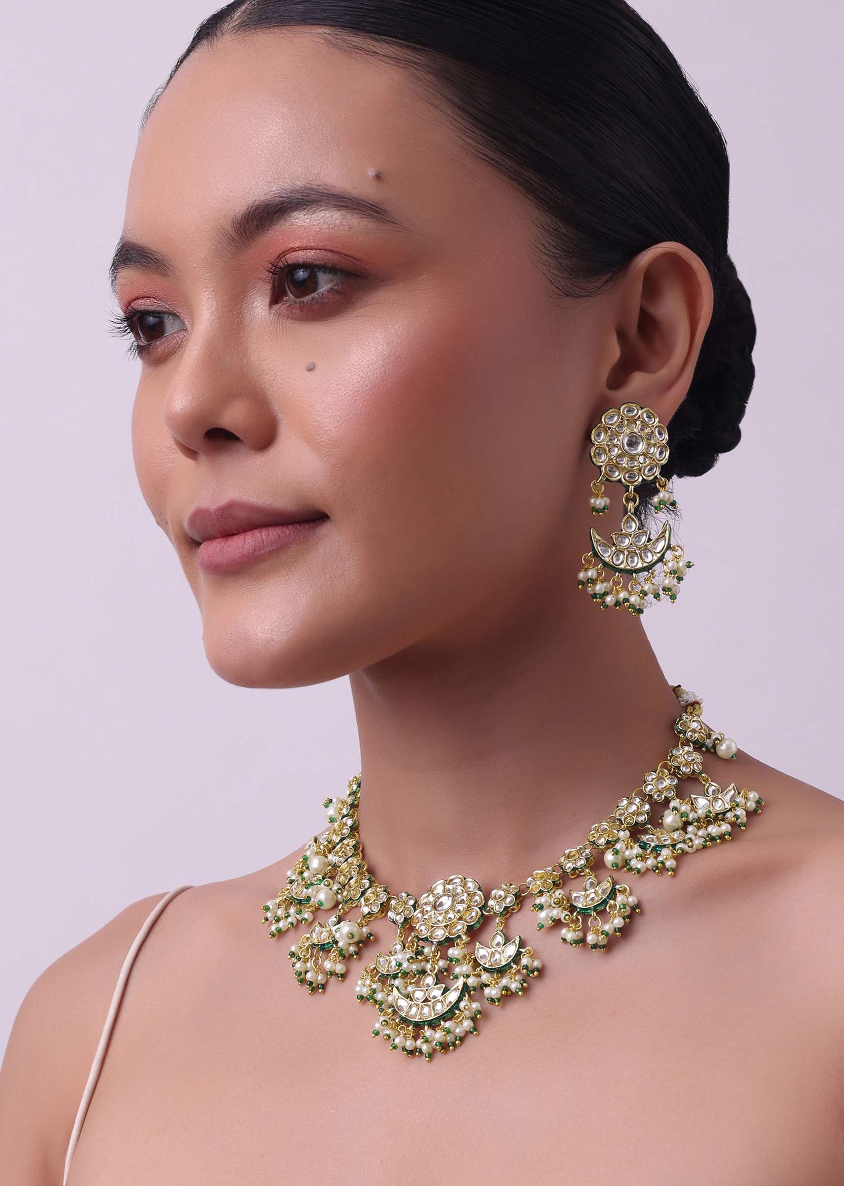 Green Kundan Necklace Set With Chandbalis In Mix Metal