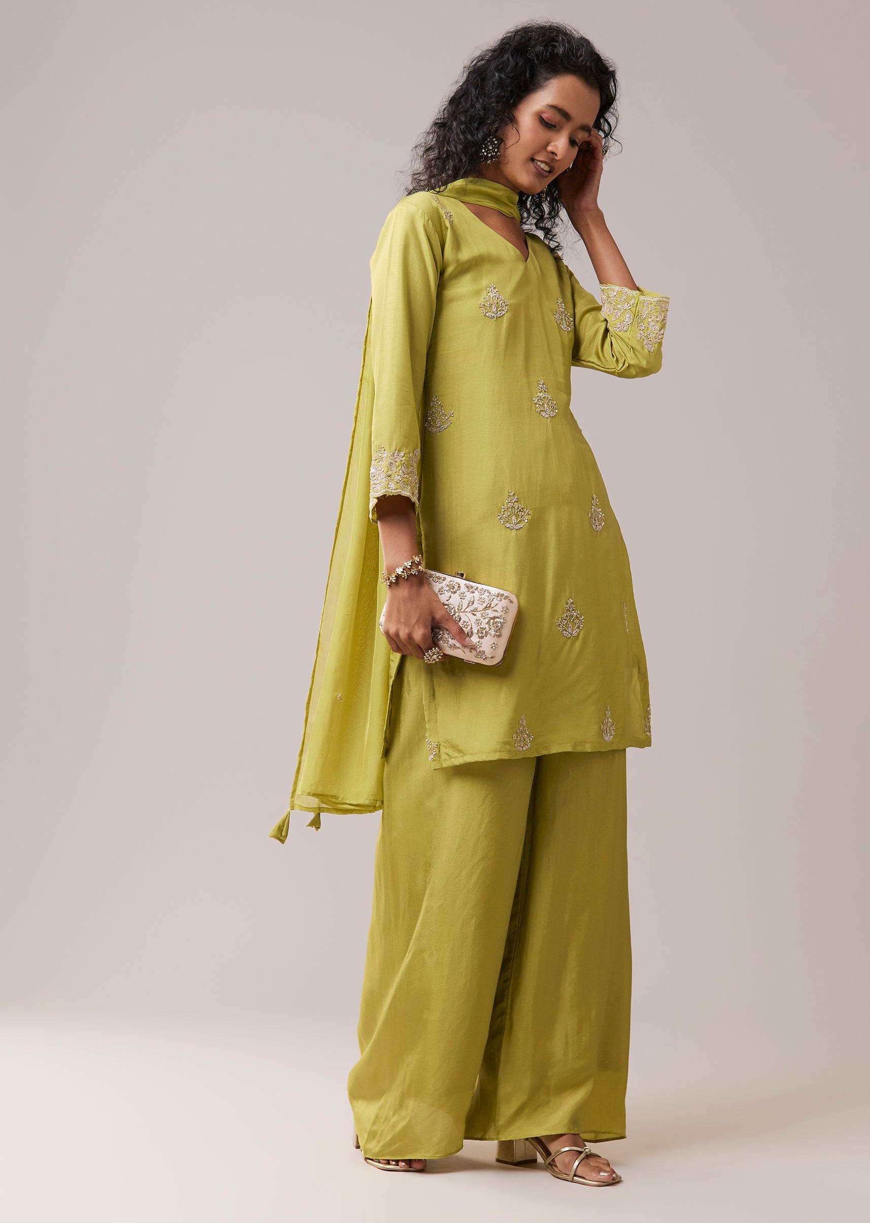 Green Kurta Palazzo Set in Silk with Cutdana Work