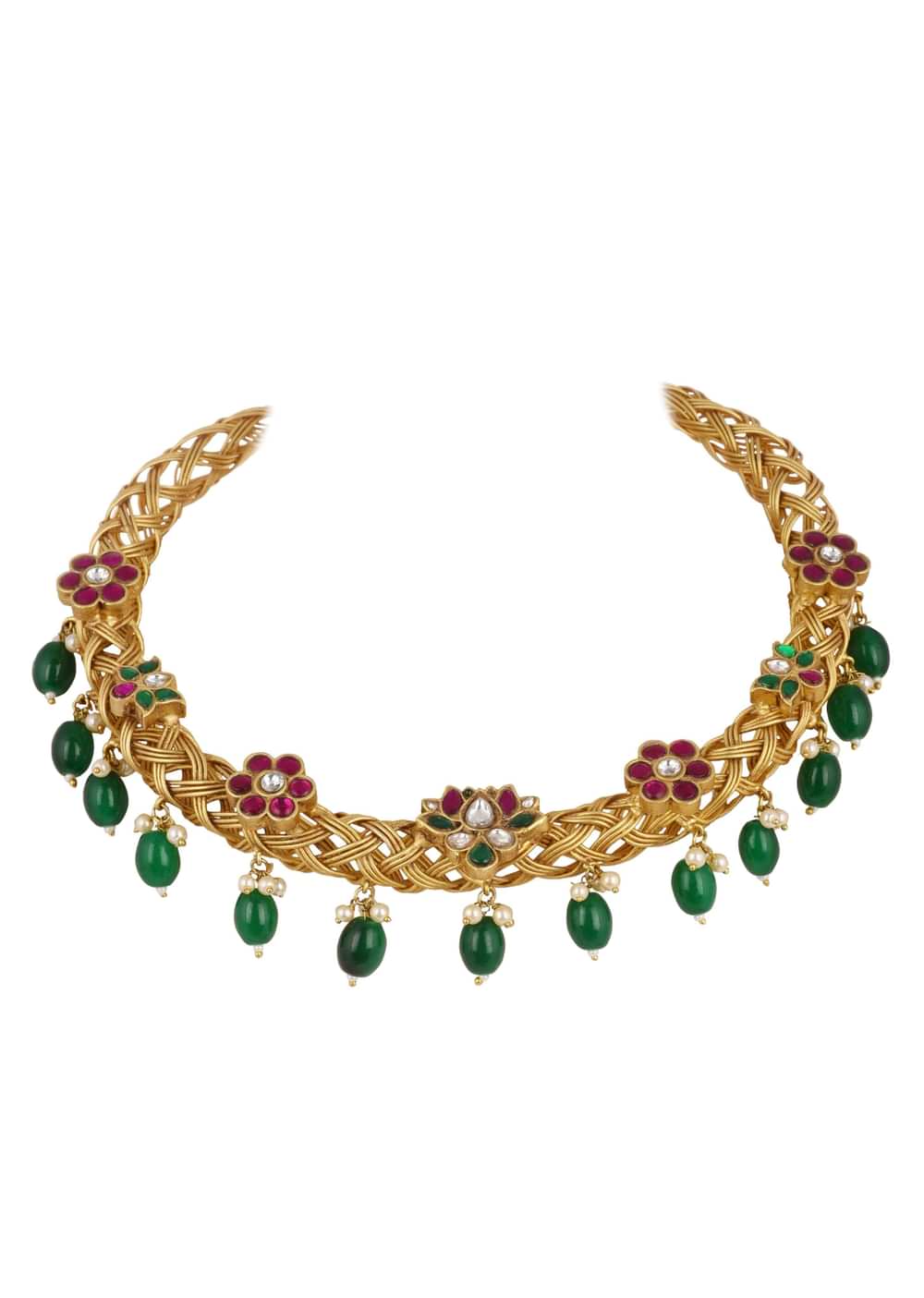- Introducing our exquisite green meenakari choker necklace designed to captivate with its temple-inspired style and stunning gold finish.