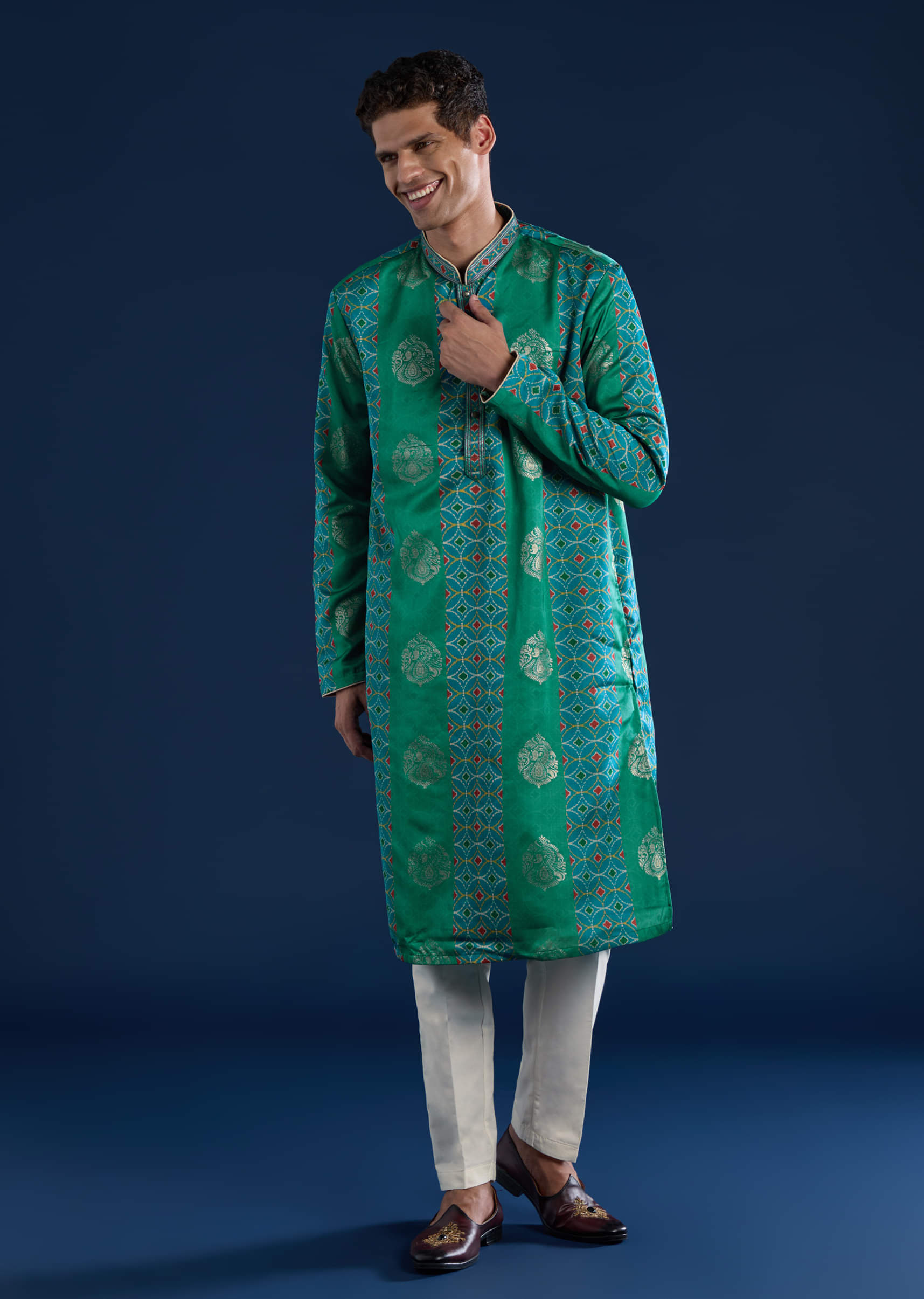 Embrace effortless style with this green art silk printed kurta set, crafted from smooth, lightweight fabric that offers both comfort and sophistication. The subtle print adds a touch of modern... More Product Details
