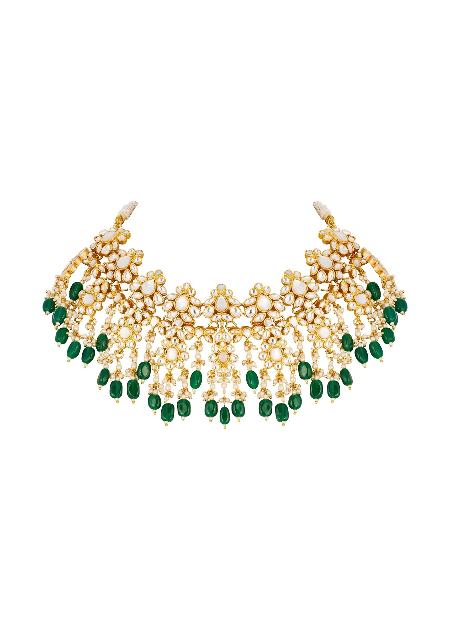 Green Necklace Set in Kundan with Faux Pearl and Emerald Stones
