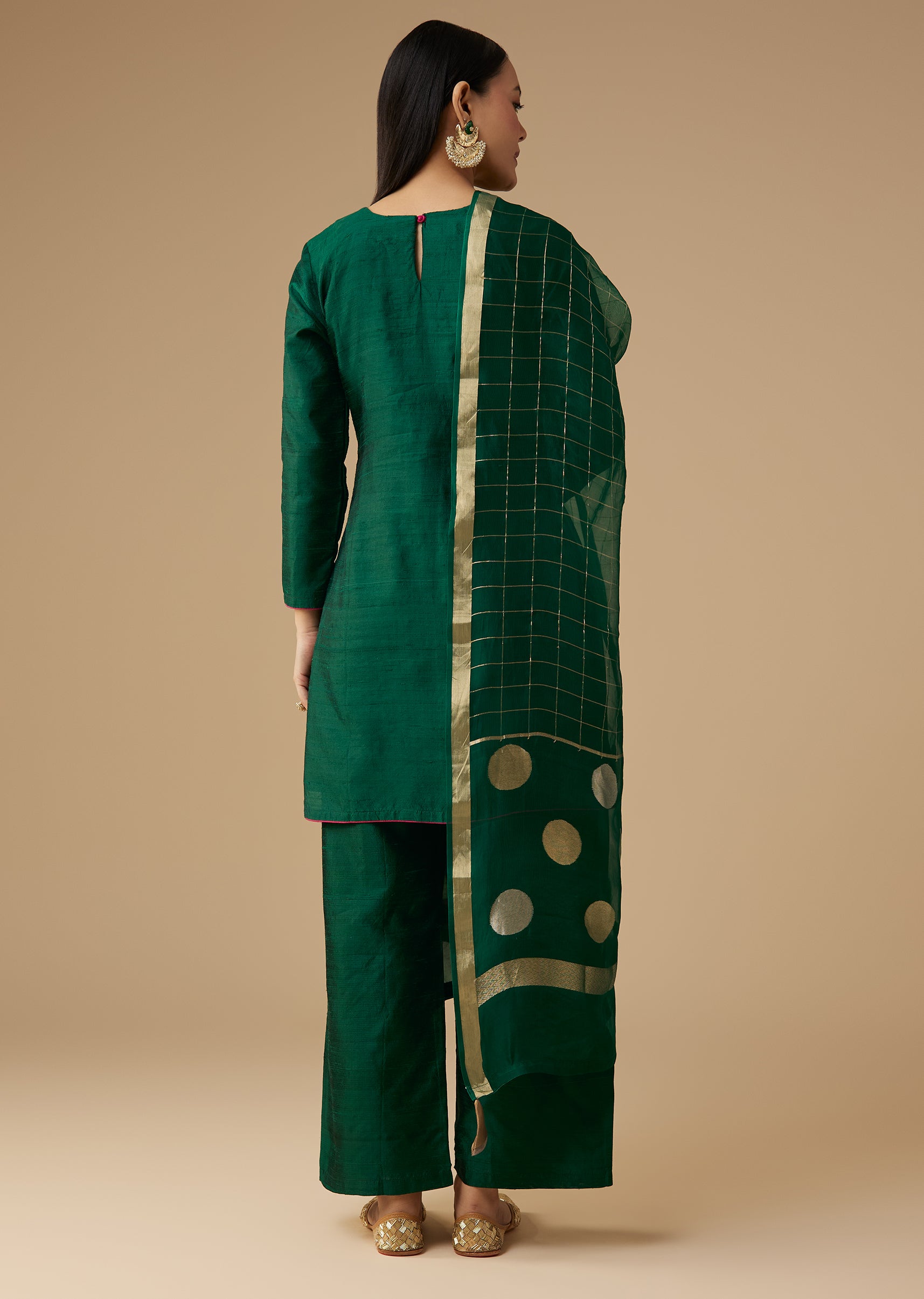 Green Pure Raw Silk Zardozi Embellished Kurta Set