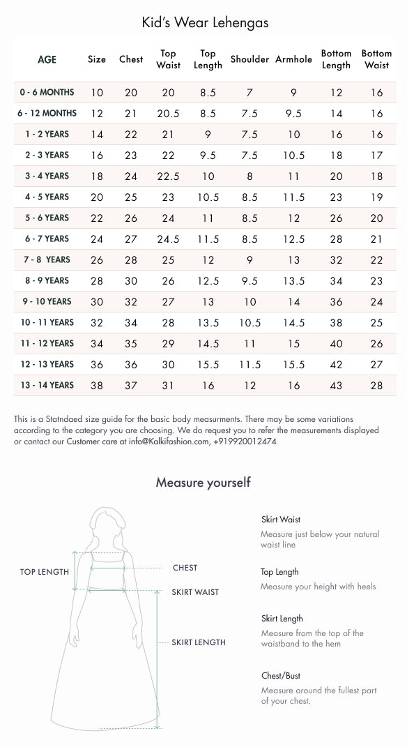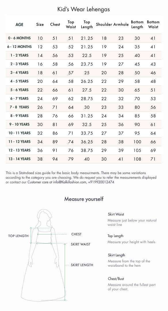 This lehenga set features a lively green base with red contrast, designed to look vibrant in photos and on stage. The printed finish keeps it fun and youthful, while georgette and faux crepe make the outfit flow beautifully when the child moves. It’s festive without being bulky, making it easy for long wear. Comes with a dupatta to complete the traditional look. Awarded as the Most Trusted Brand, we're delivering styles you love, just as promised.