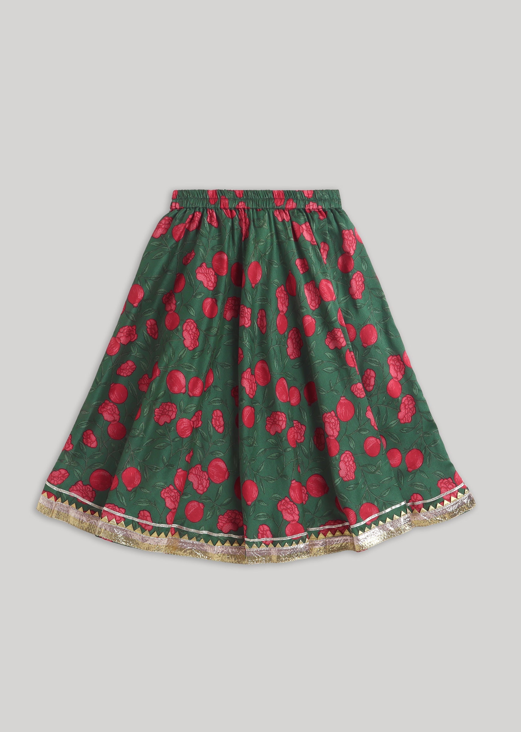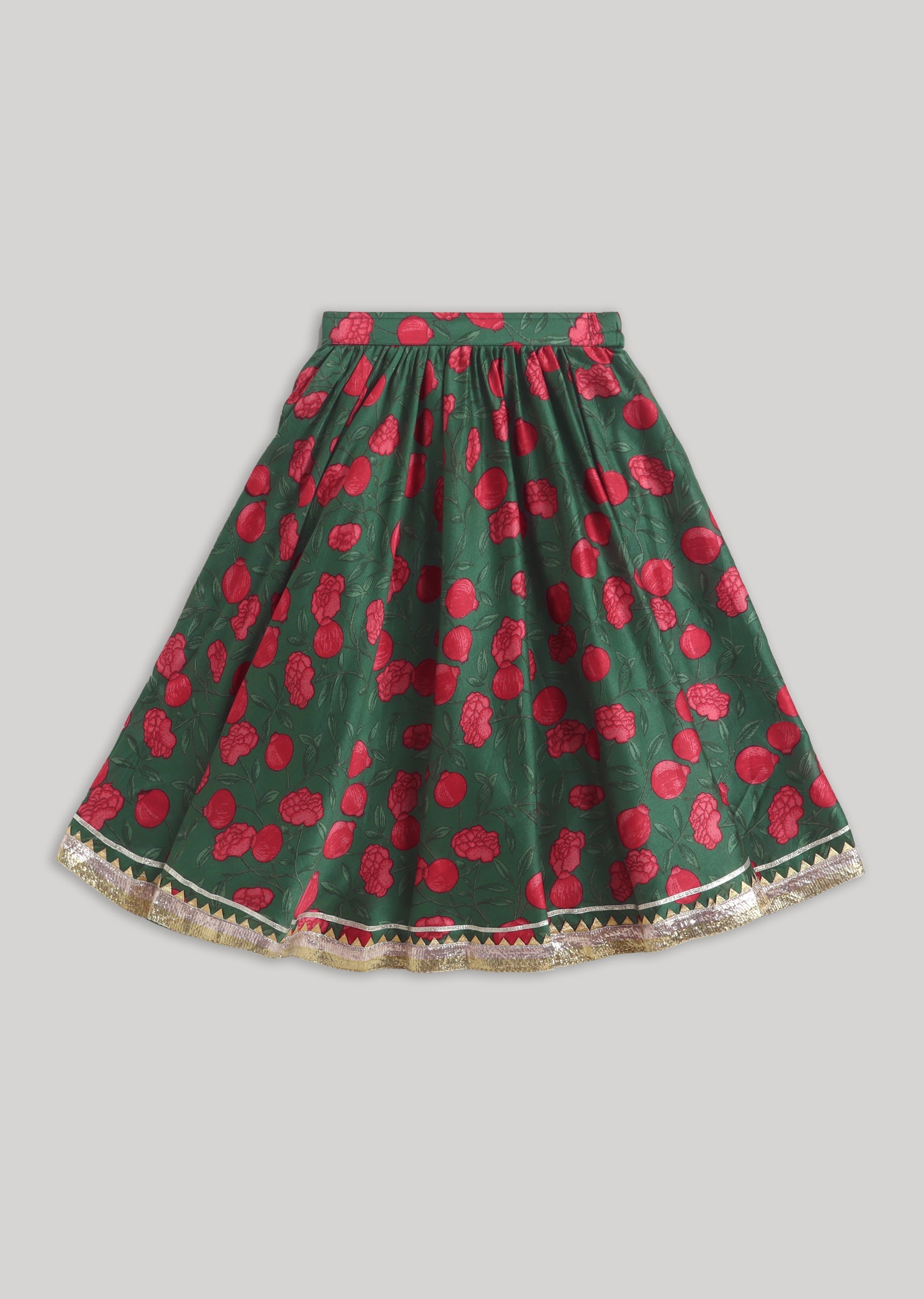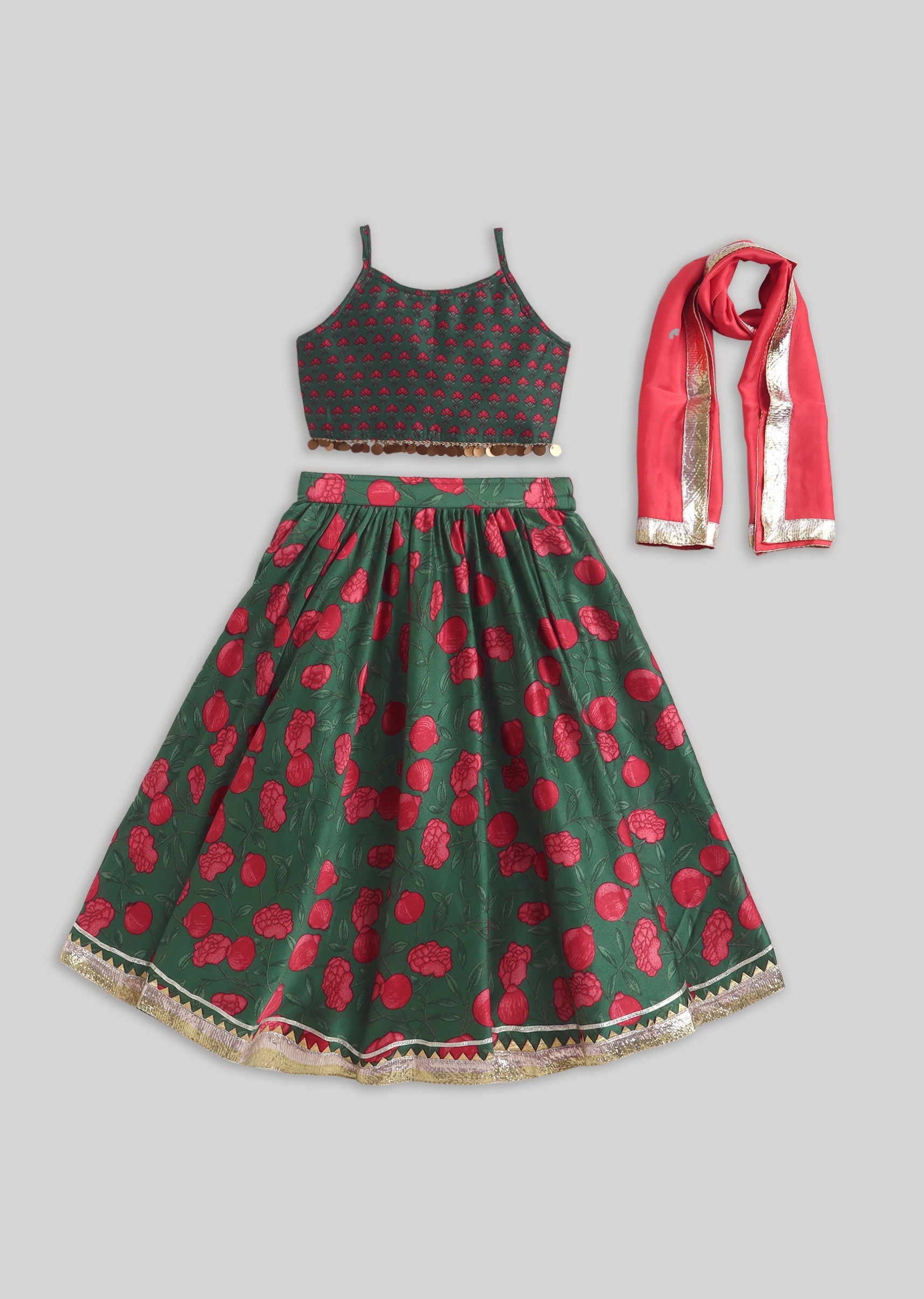 Green Red Printed Lehenga Set