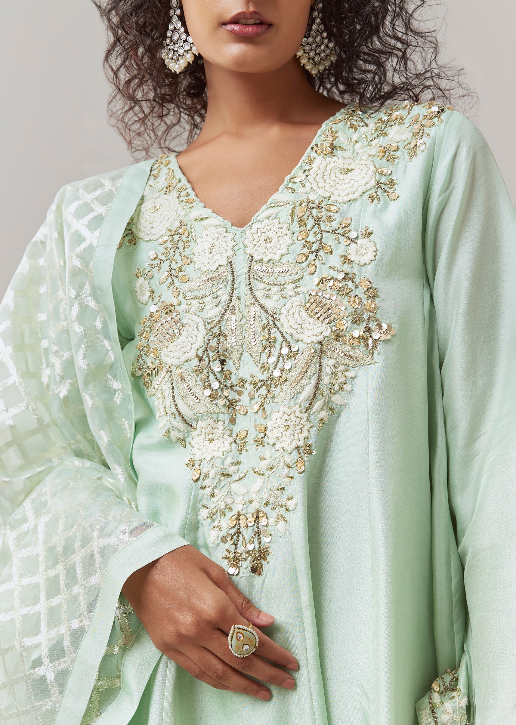 Grace meets a hint of playfulness in this thread and sequins work silk kurta sharara set, designed to make every moment feel special. The elegantly embroidered V-neck kurta with flared... More Product Details