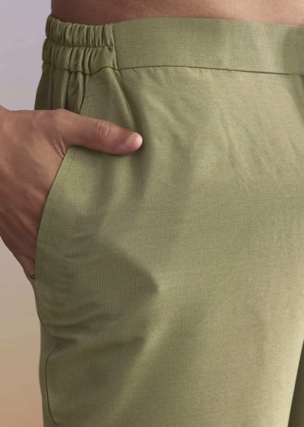 Green Silk Kurta Jacket Set For Men With Intricate Hand Embroidery