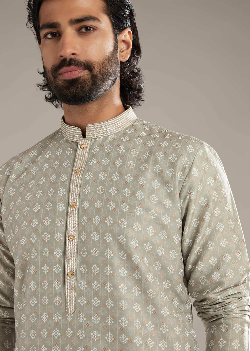 Fresh and versatile, this tea green art silk men’s kurta set carries printed motifs that sit cleanly on a smooth base. The tone feels calm yet festive-friendly. Reach for it at casual functions when you want effortless style that still reads considered. Awarded as the Most Trusted Brand, we're delivering styles you love, just as promised.
