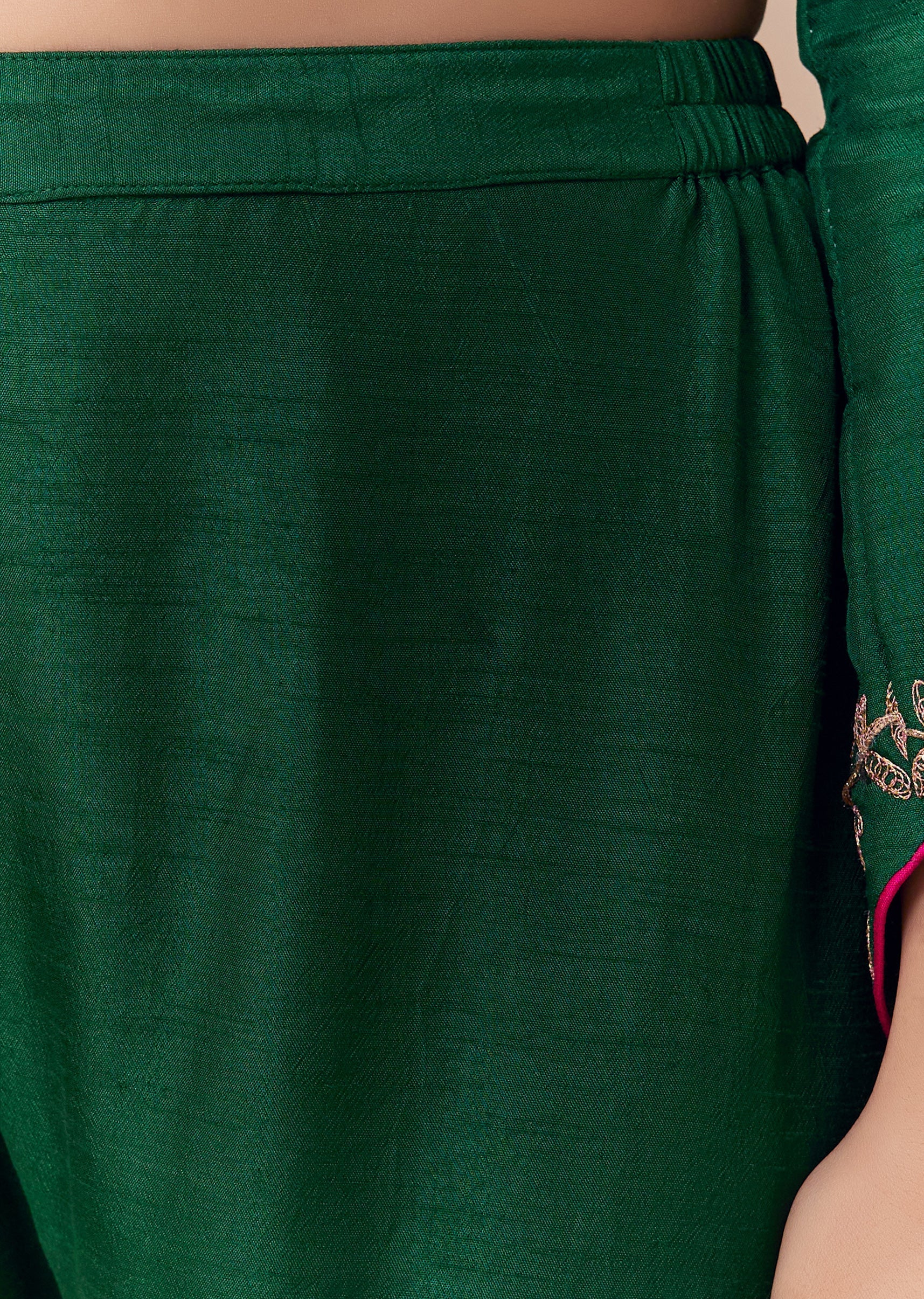 Own the room with effortless confidence in this green Anarkali, glowing with zari work that adds just the right touch of festive sparkle. The rich green silk pant and dupatta... More Product Details