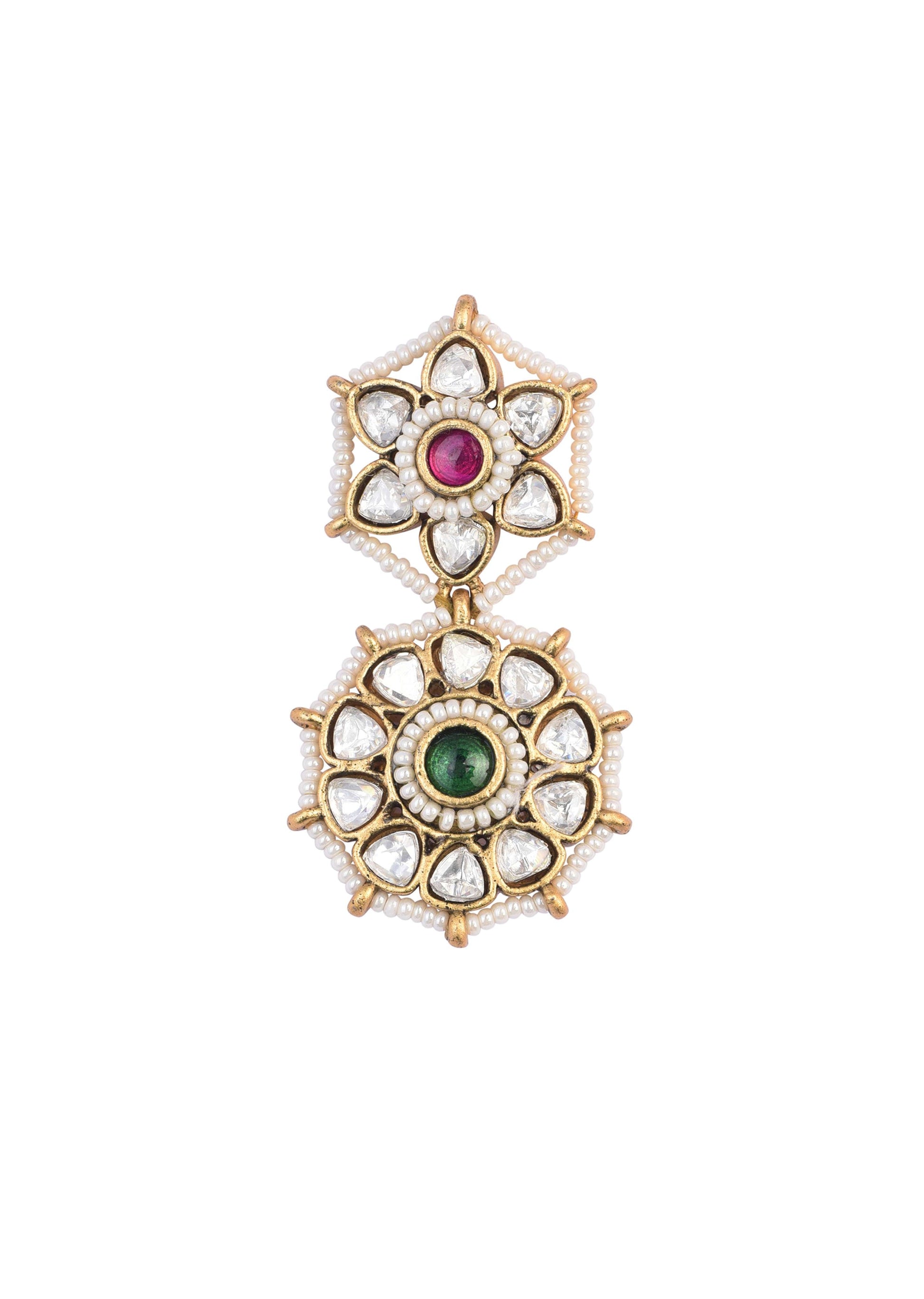 - Finished with exquisite Meenakari detailing and tiered danglers, this piece adds an elegant and timeless look to your outfits.