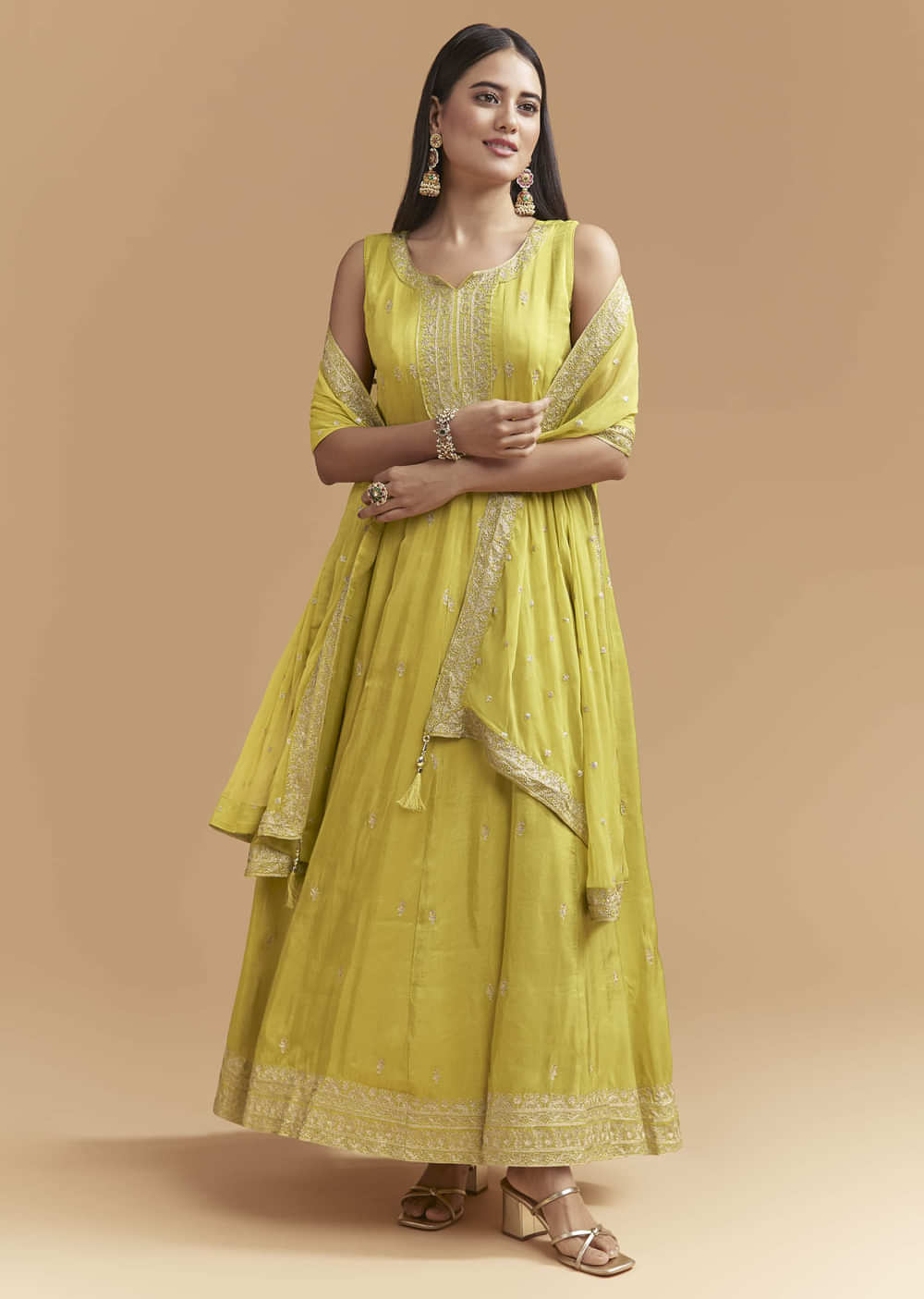 Green Tissue Anarkali Suit With Intricate Zari Work