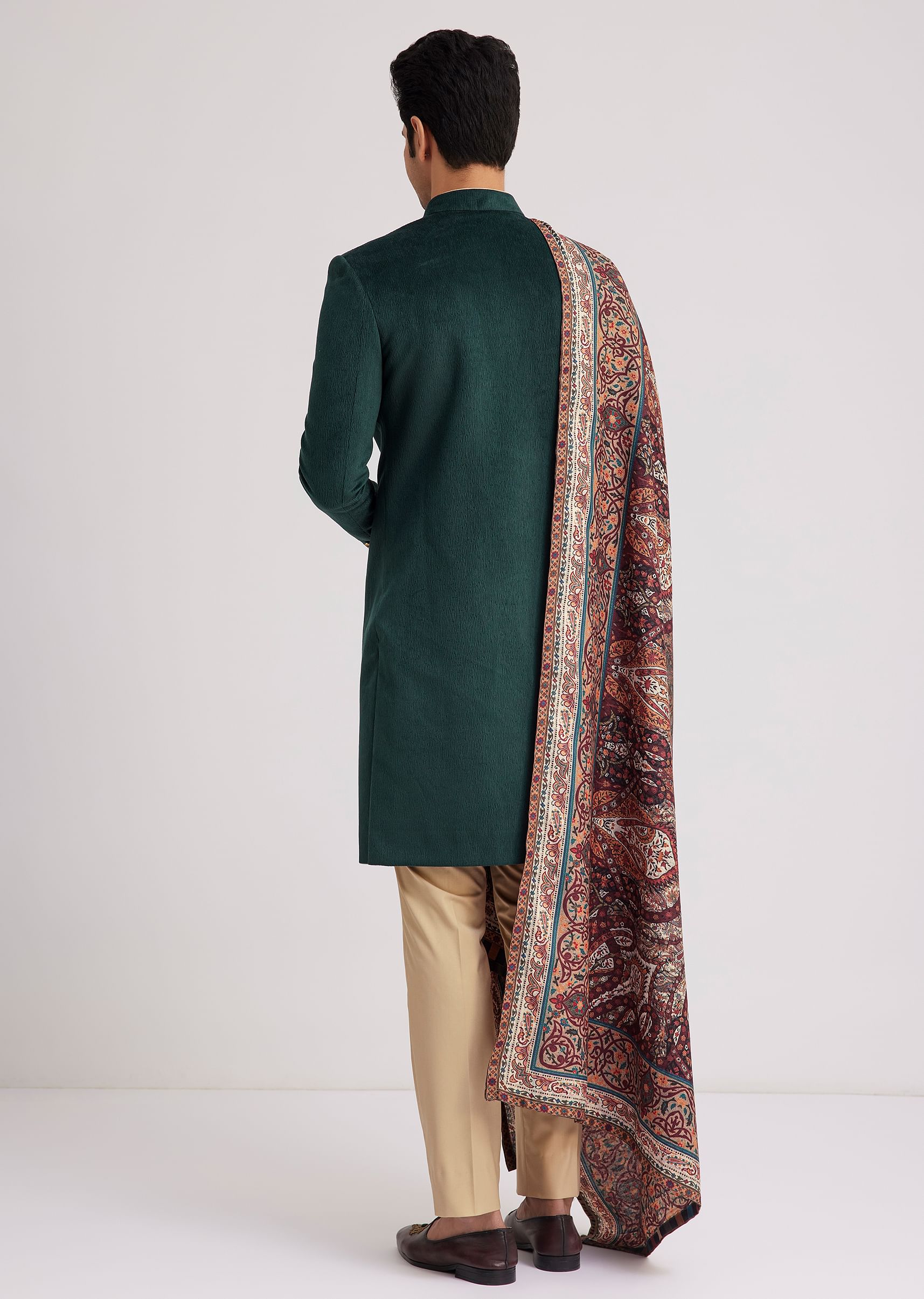 Green Velvet Nawabi Set With Printed Pashmina Dupatta