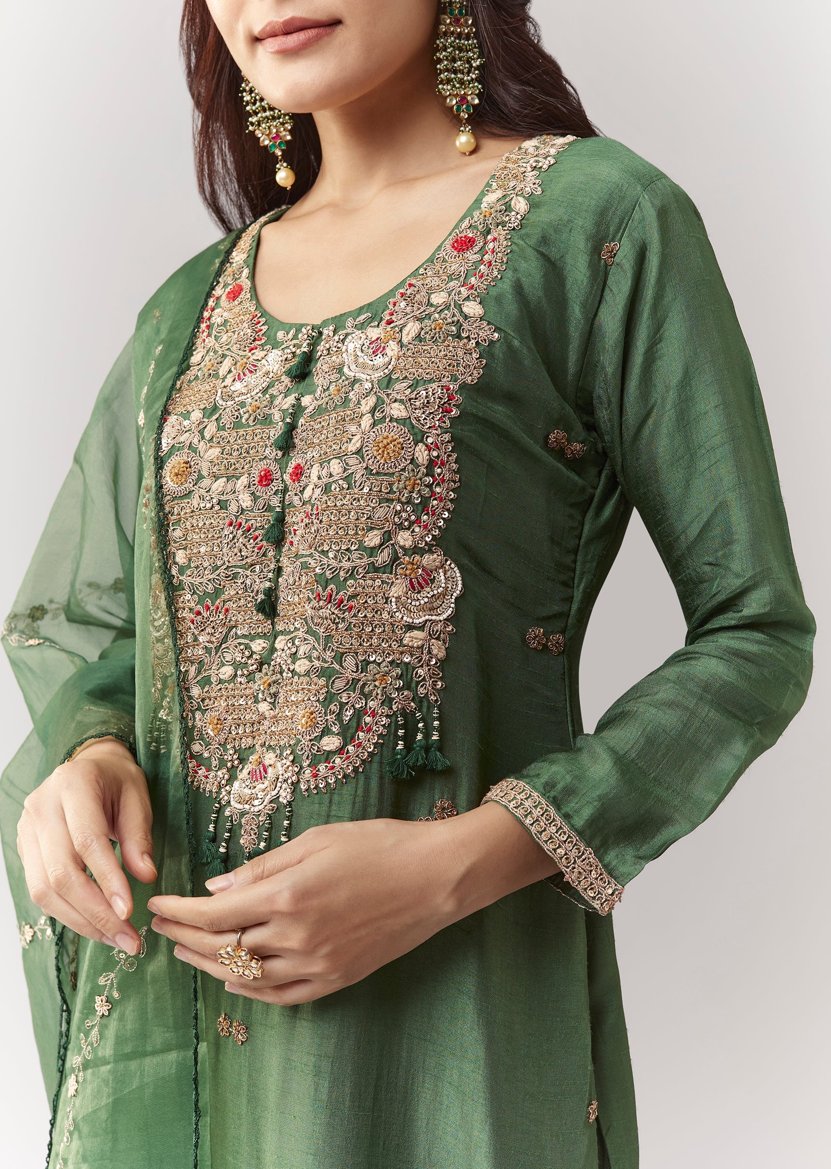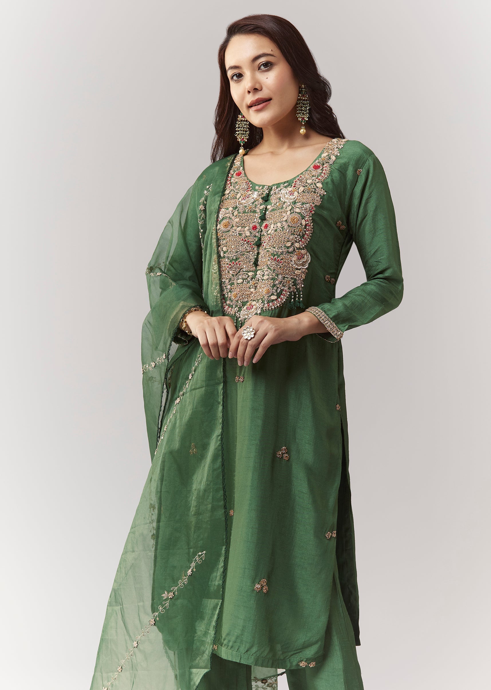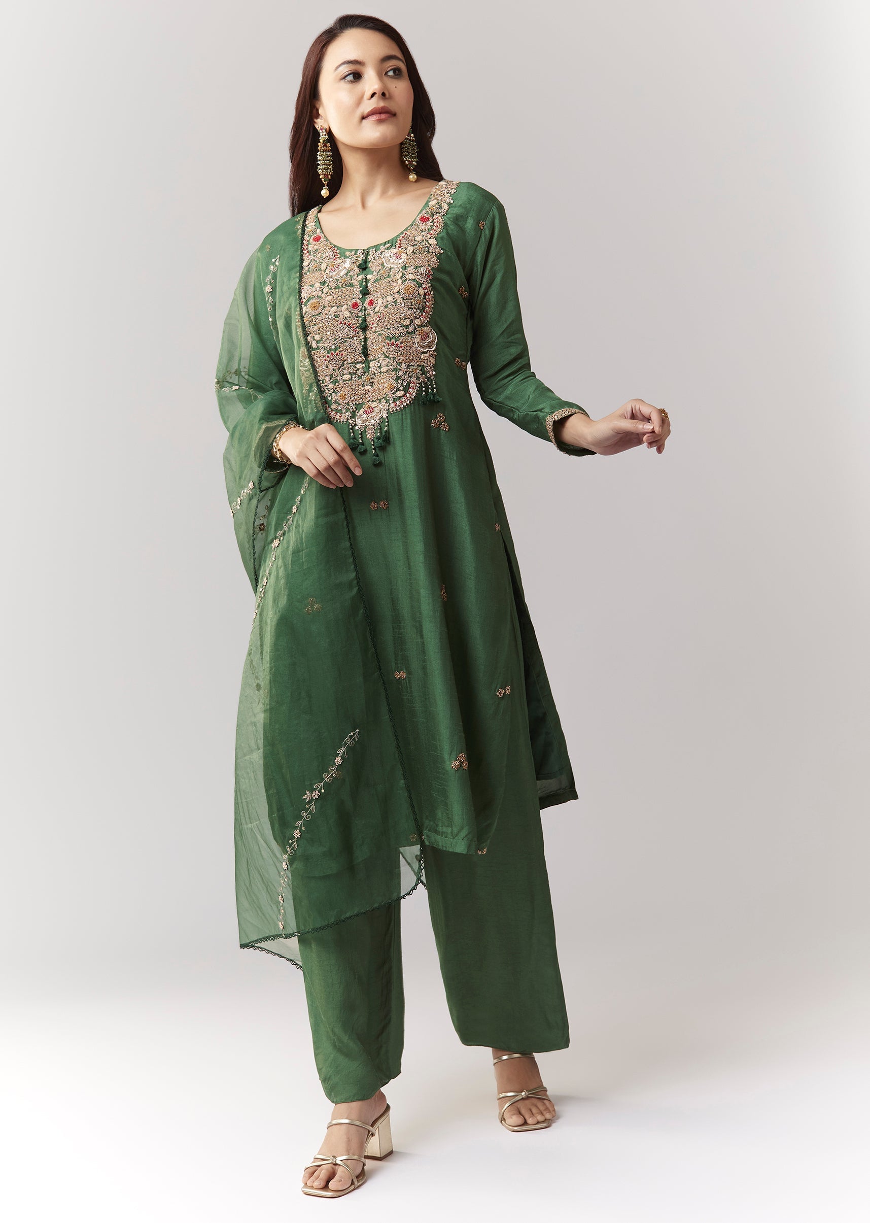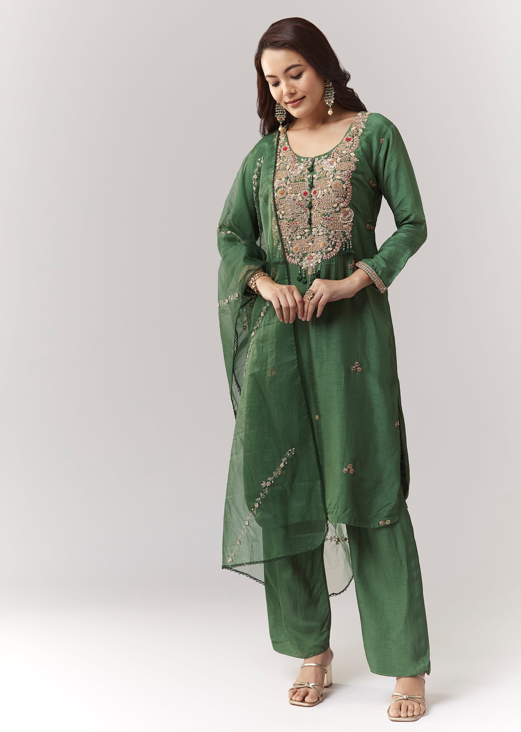 Green Zardosi Kurta Pant Set With Dupatta