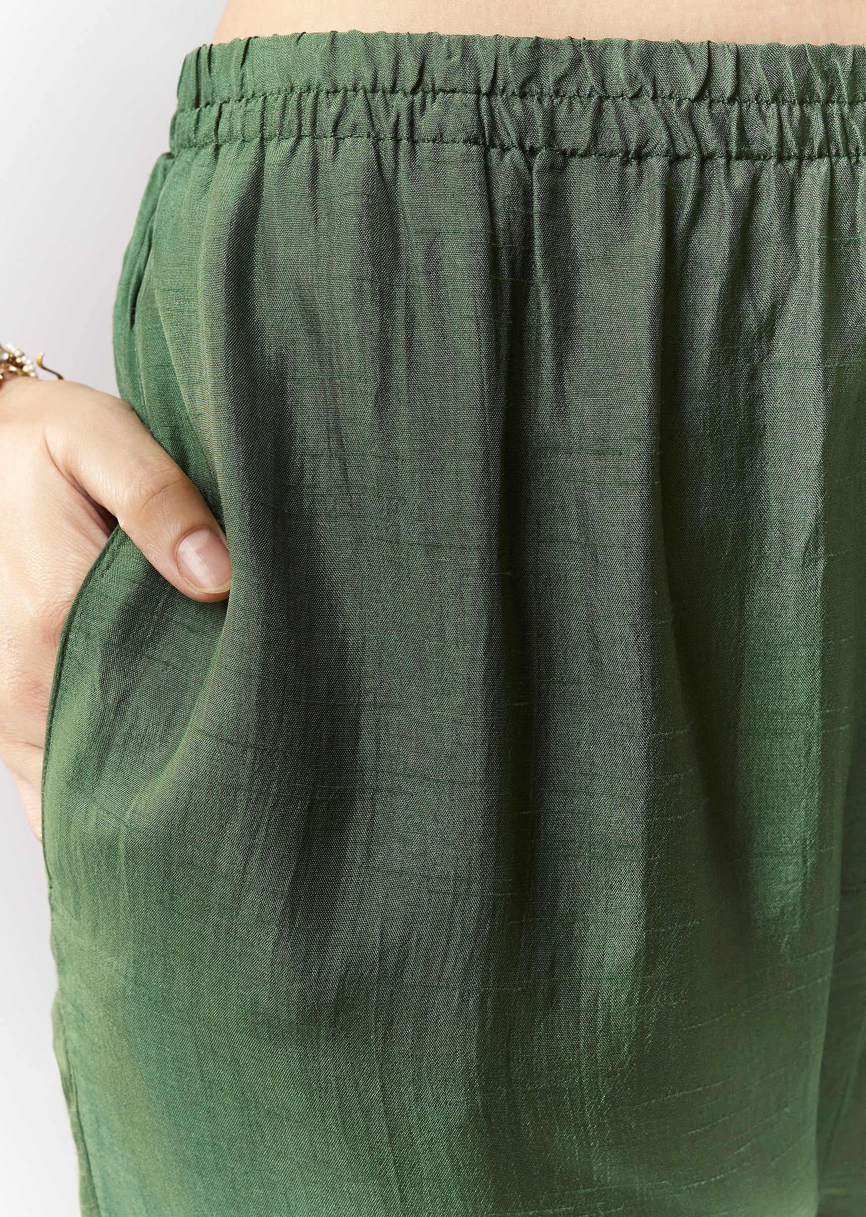 A straight silhouette green kurta set with zardosi work in dola silk, paired with elasticated straight pants and organza dupatta—ideal for festive + pooja wear. Awarded as the Most Trusted... More Product Details