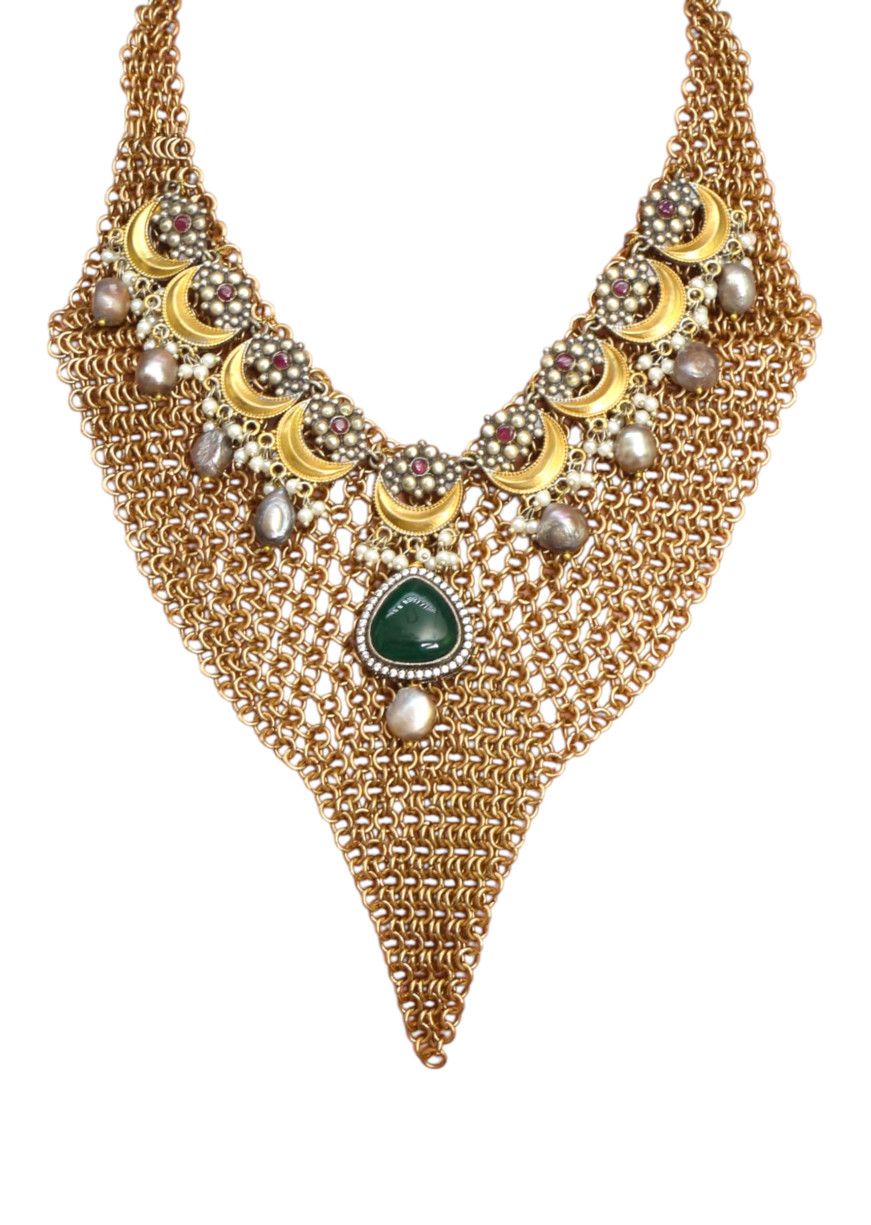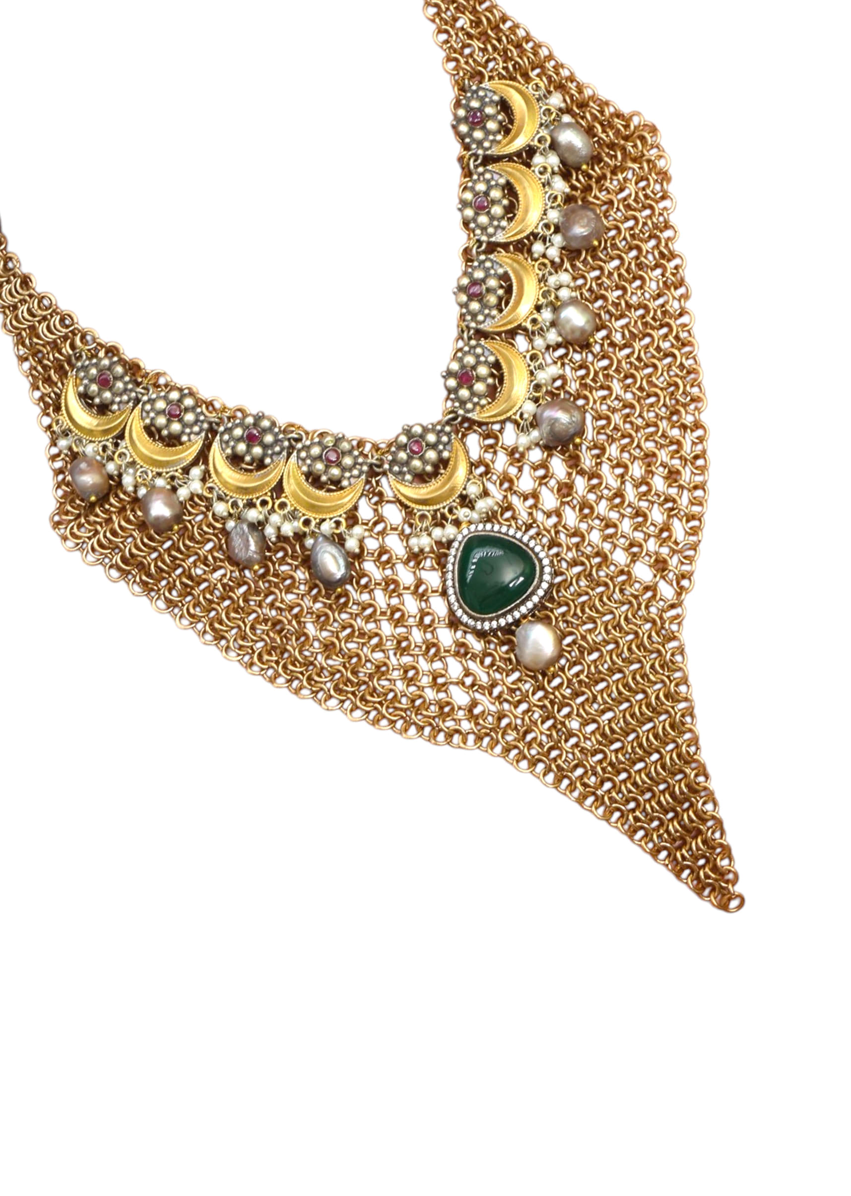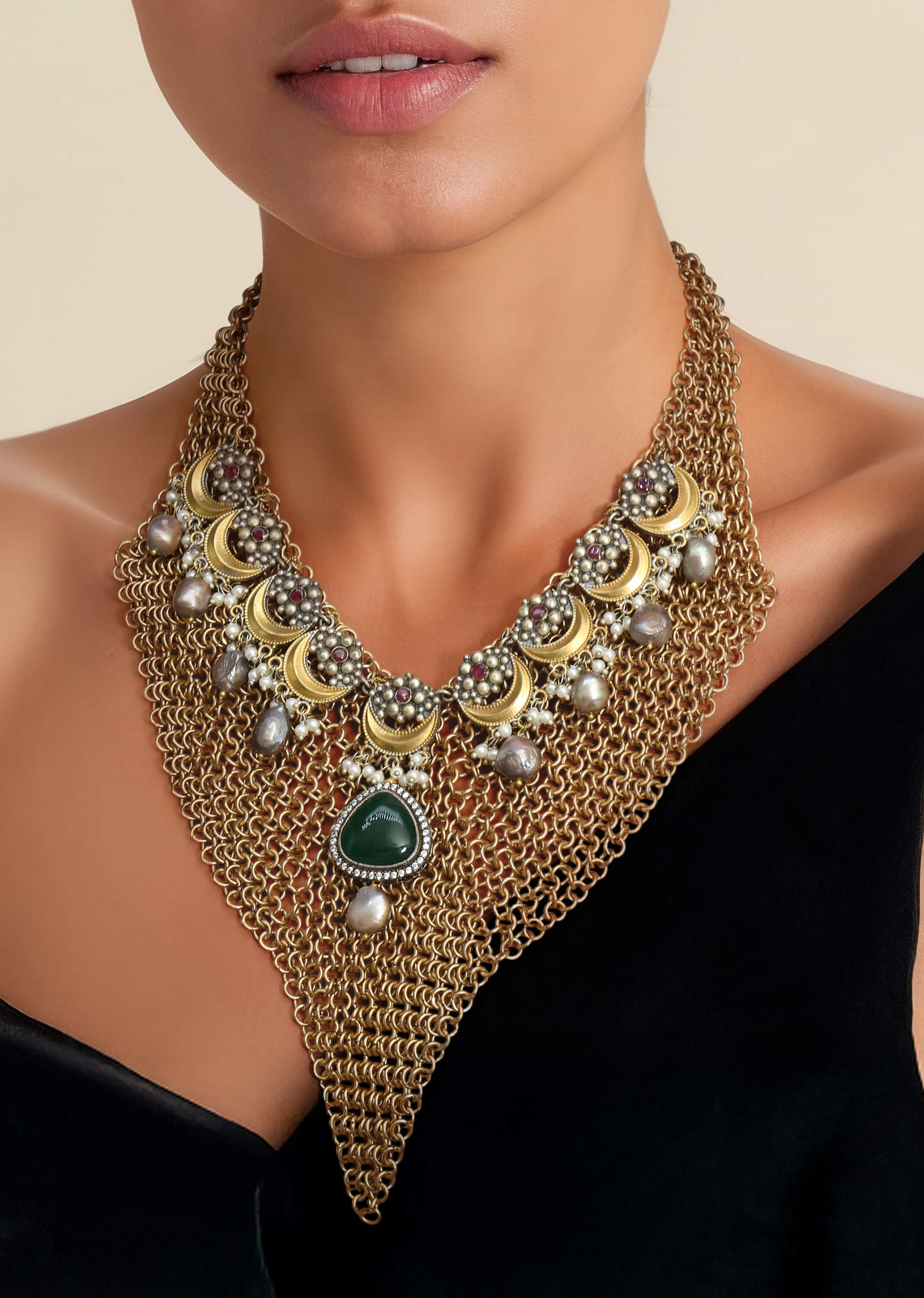 A grey fusion chain tassel statement necklace featuring sleek metallic tones, layered chains, and intricate tassel detailing, blending modern sophistication with artistic flair. Perfect for adding a bold and elegant... More Product Details