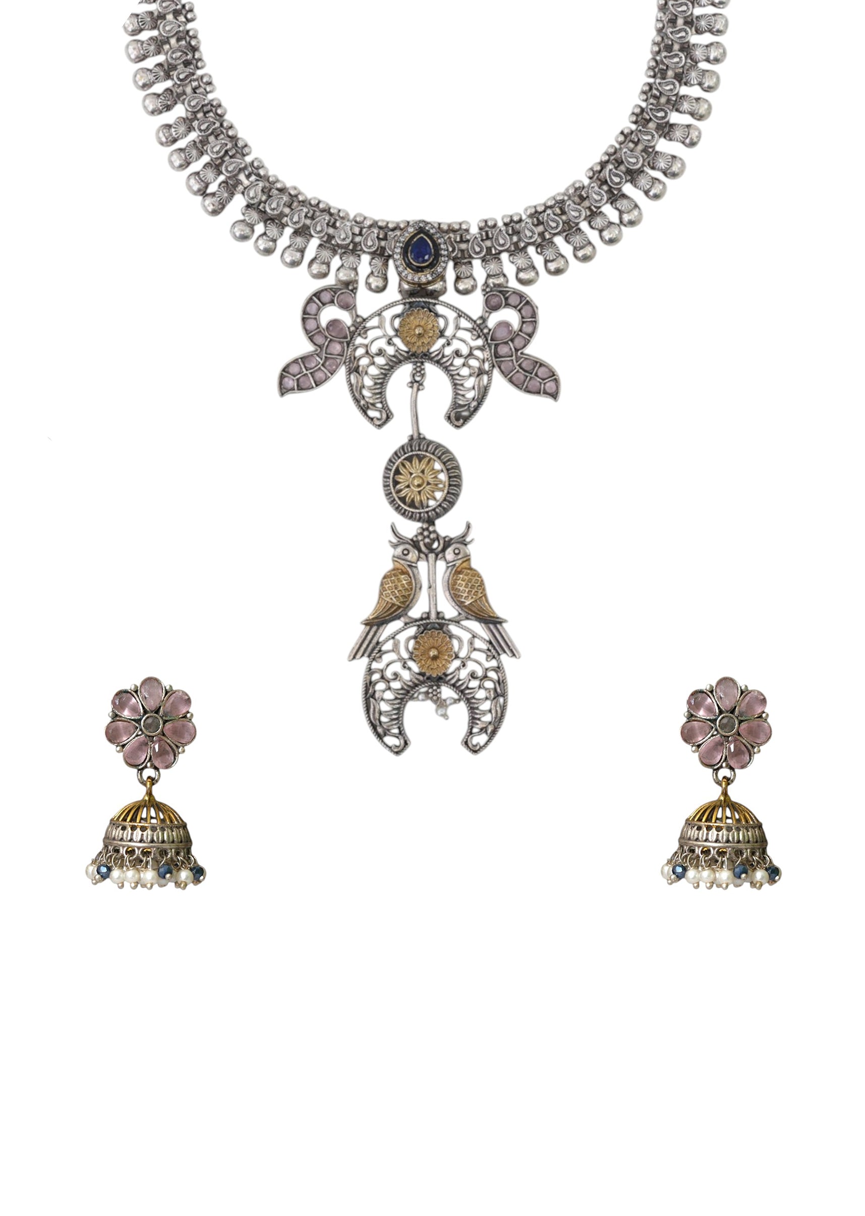A grey fusion pendant drop statement necklace set featuring a bold pendant with shimmering stones and intricate detailing, exuding modern sophistication and timeless elegance. Perfect for adding a striking and... More Product Details