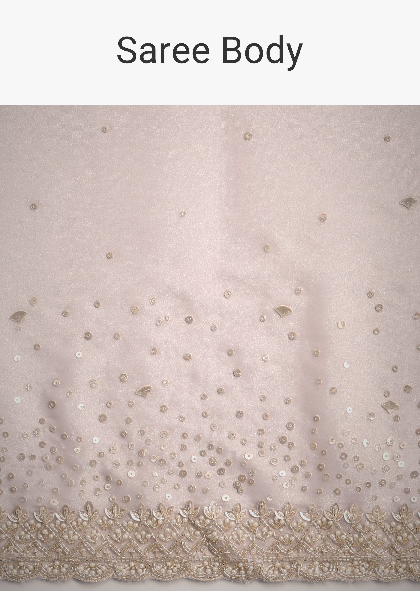 Grey Glass Tissue Silk Cutdana Work Saree With Embellished Scallop Border