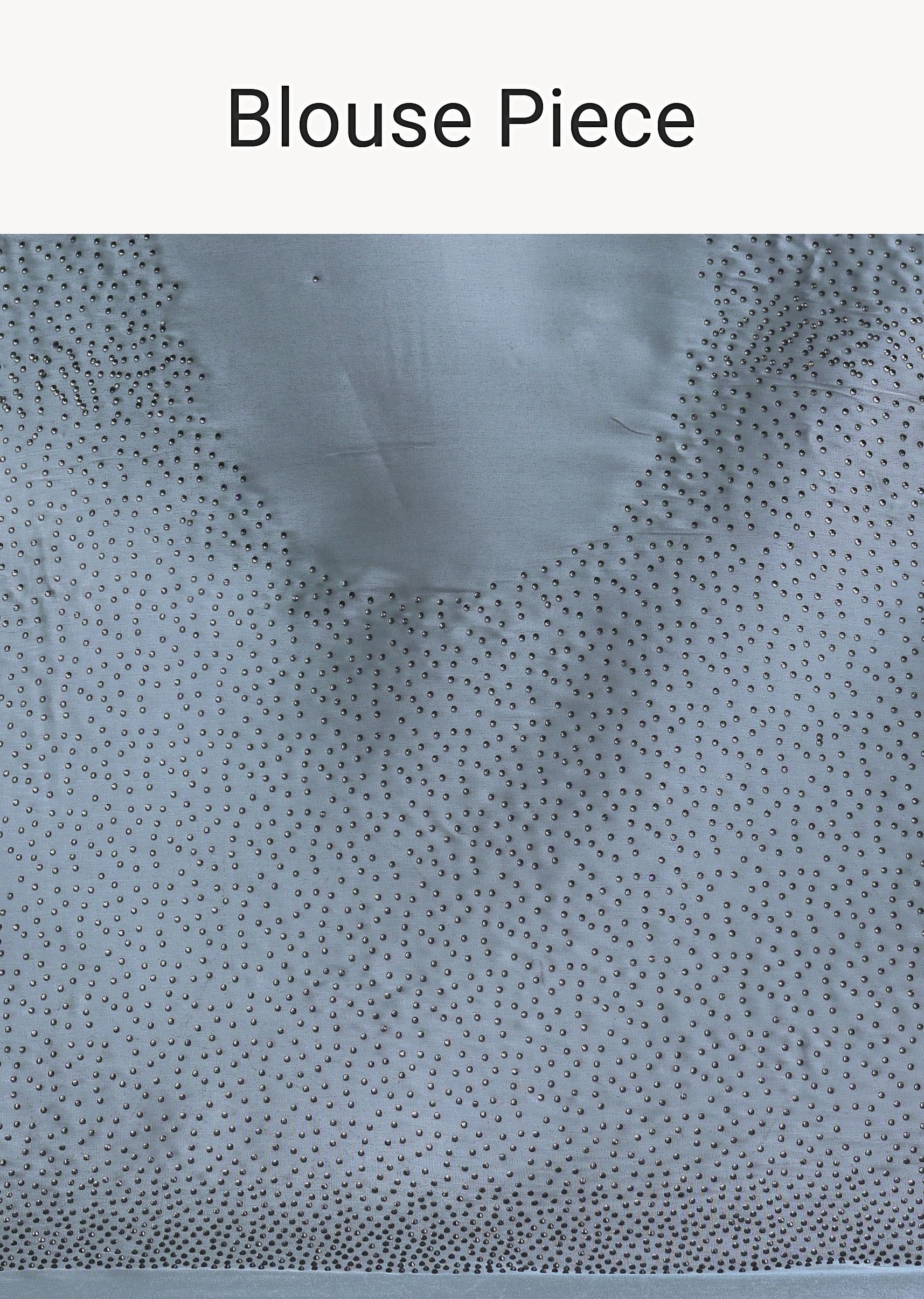 Grey Satin Saree With Stone And Diamond Work