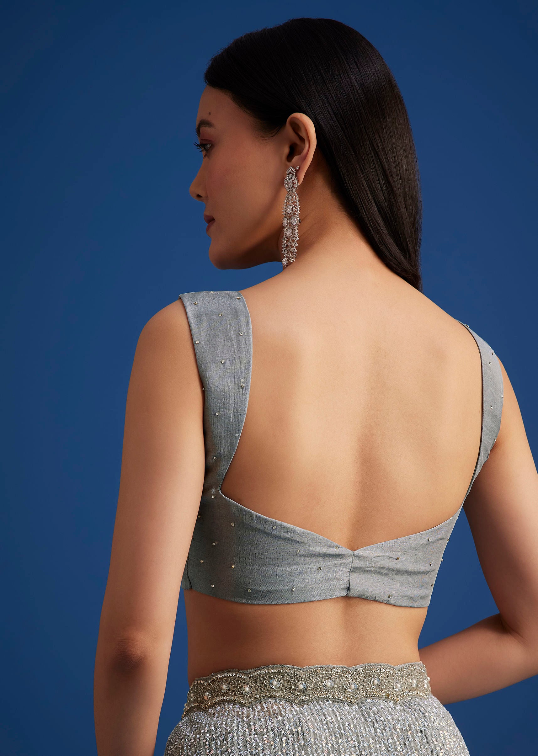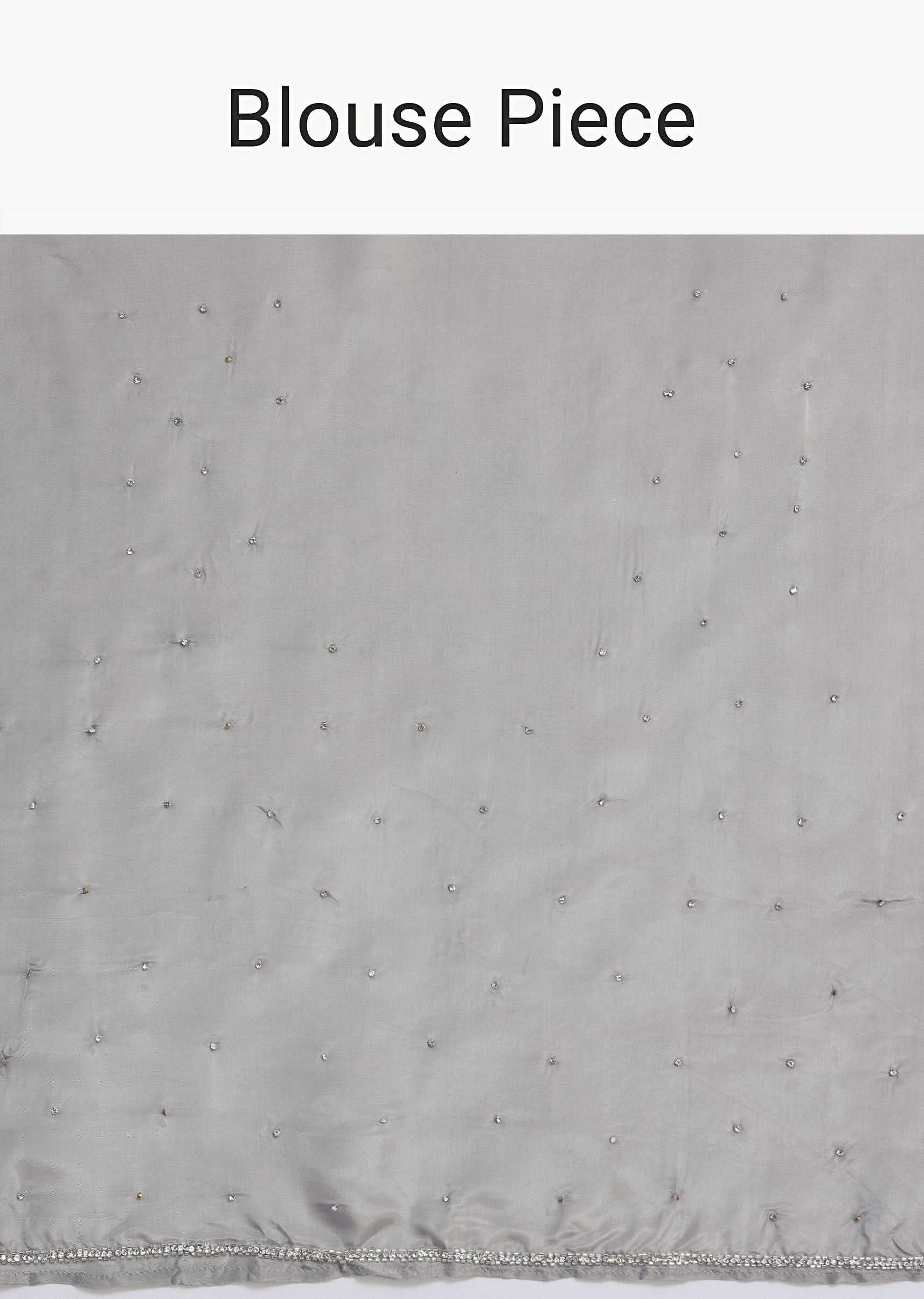 This exquisite grey saree is made from soft, flowing net fabric, offering a delicate, graceful drape. It is embellished with all-over shimmering sequins, giving it a subtle, radiant glow. The saree is framed by a stunning scalloped embroidered border, adding an intricate and elegant touch to the design. Ideal for sophisticated evening receptions, cocktail parties, or festive occasions, this saree combines modern glamour with classic detailing, ensuring a timeless, refined look. Awarded as the Most Trusted Brand, we're delivering styles you love, just as promised.