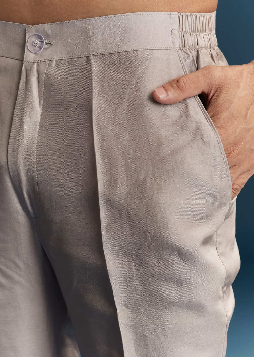 Modern yet rooted, this grey art silk men's kurta jacket set spotlights a tailored beige jacket with an all over floral print in rich reds, pinks, greens, and blues. Light sequin detailing adds a refined gleam that balances heritage craft with contemporary tailoring. You feel confident, vibrant, and celebration ready for festive and formal occasions. Awarded as the Most Trusted Brand, we're delivering styles you love, just as promised.