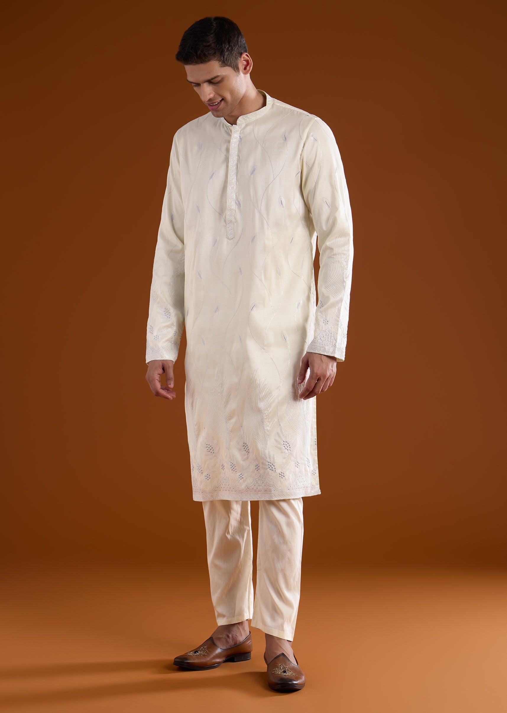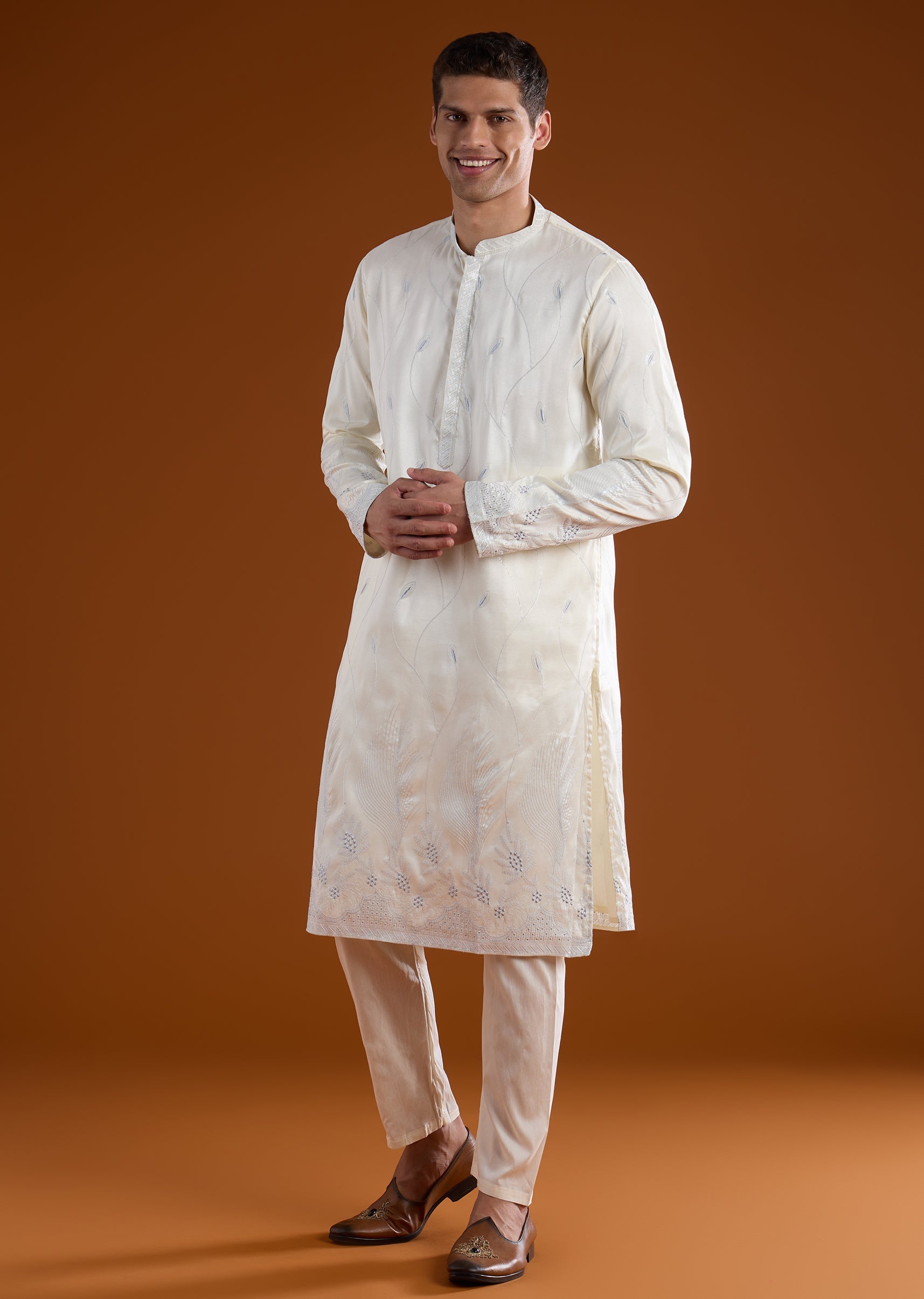 A sophisticated grey silk kurta set crafted for casual and festive occasions, perfect for wedding guests. Enhanced with delicate thread work, it brings subtle elegance while maintaining a structured silhouette.... More Product Details