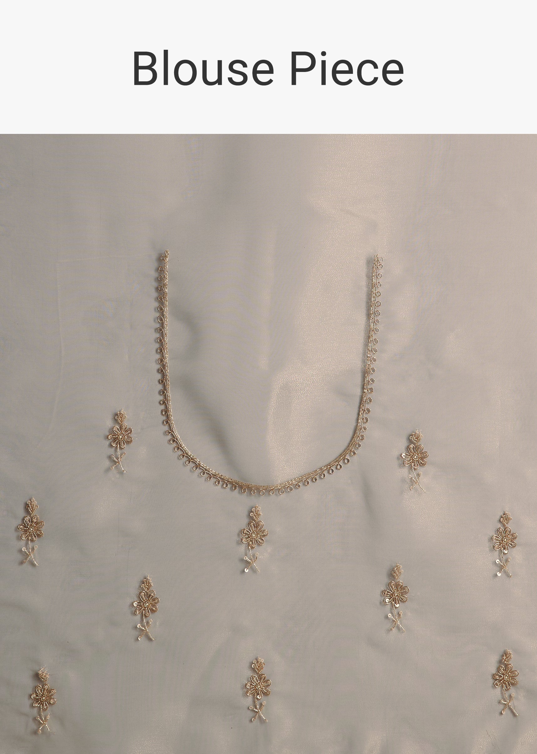 Grey Tissue Saree With Floral And Zardosi Embroidery
