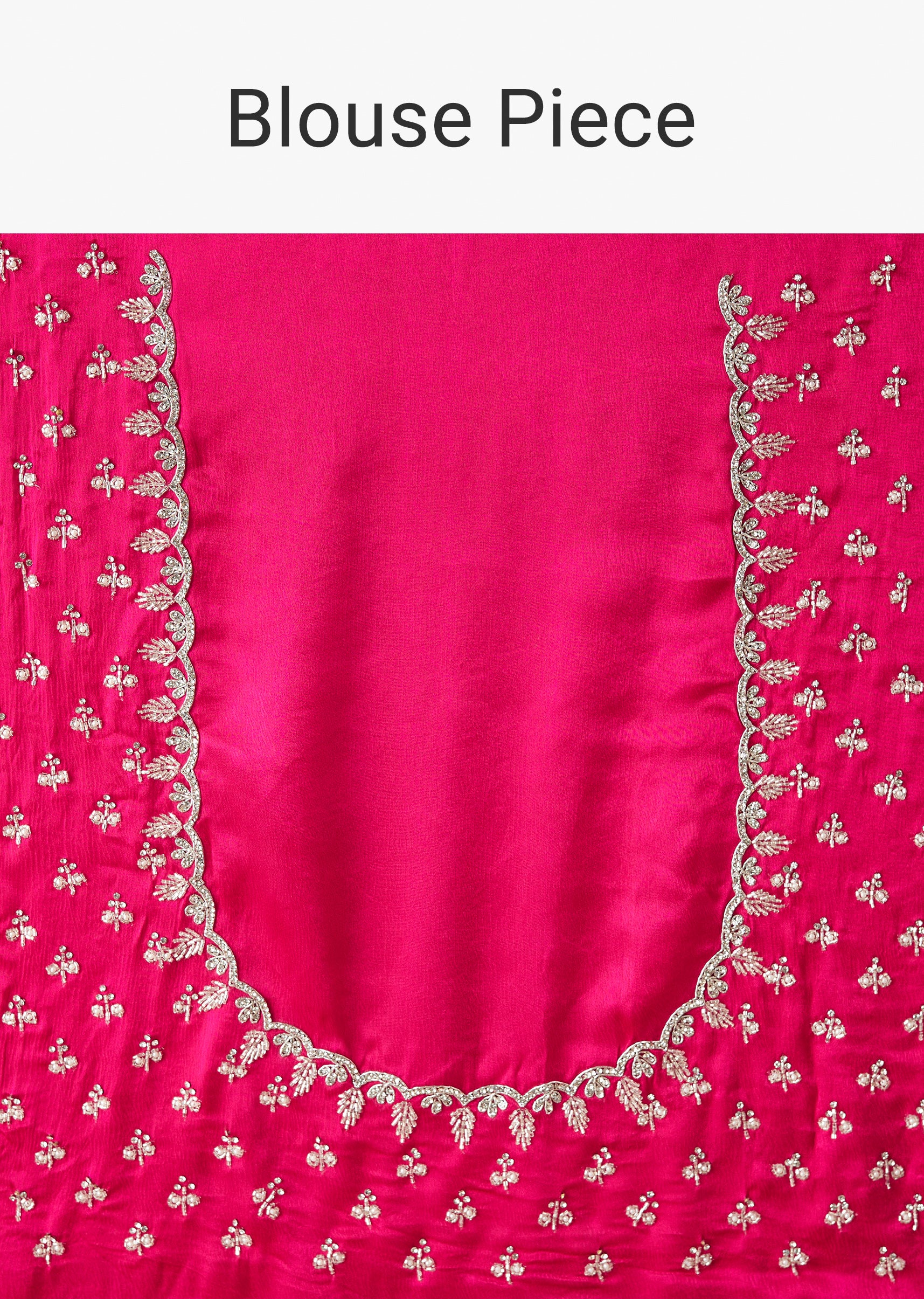 Energy and bold colour define this hot pink chinon saree. The borders are embroidered with buttis in sequins, cutdana, and stone highlights. It is made for festive parties or Karwa Chauth when you want to look picture ready. Awarded as the Most Trusted Brand, we're delivering styles you love, just as promised.