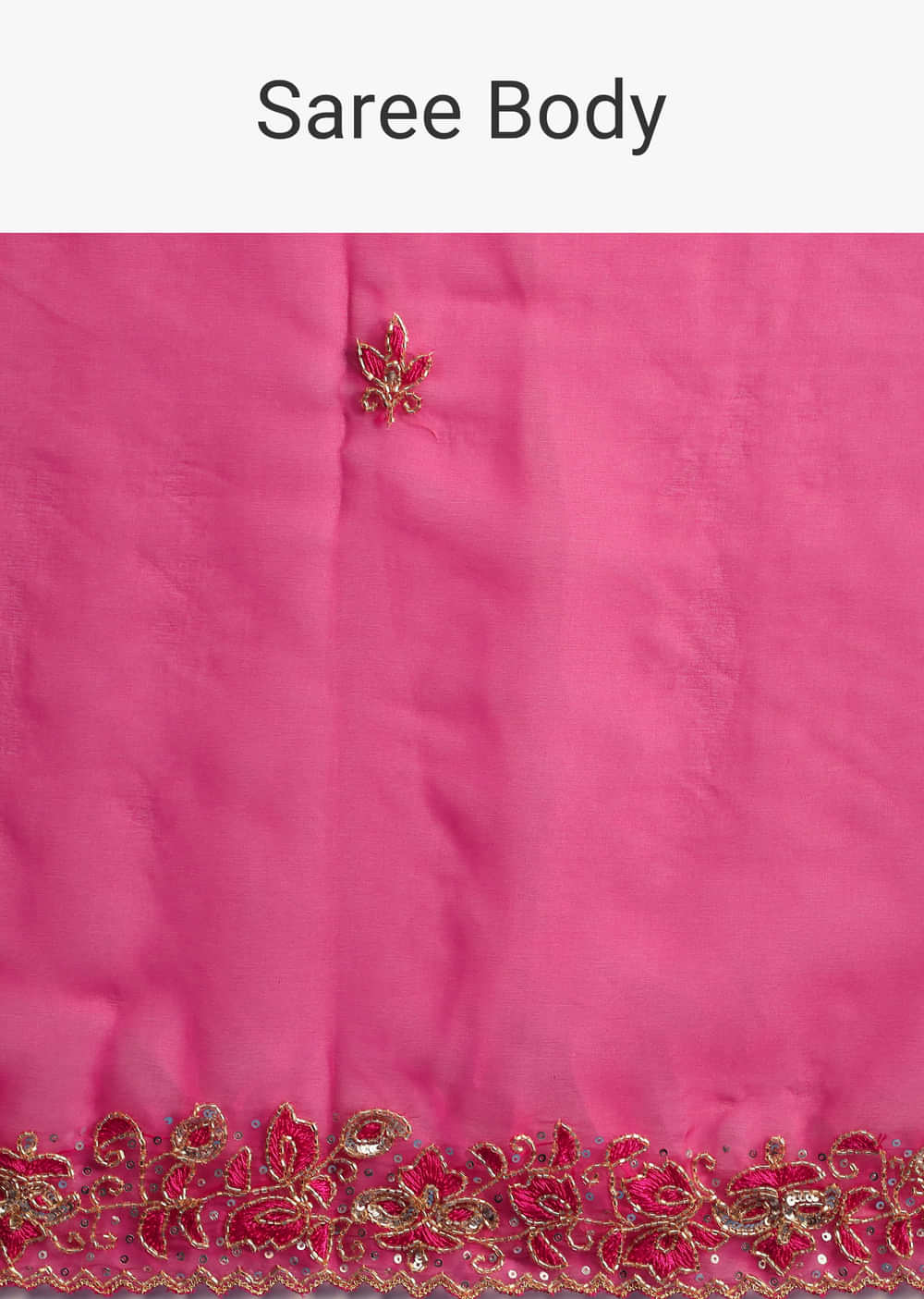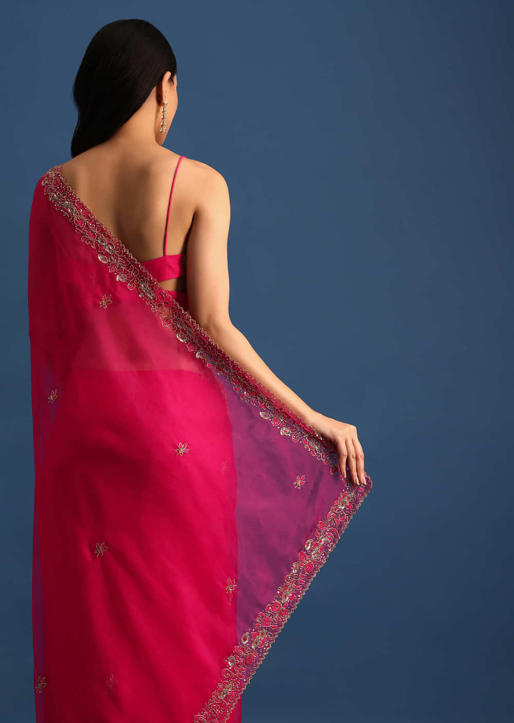 Hot Pink Cutdana Embroidered Saree With Unstitched Blouse
