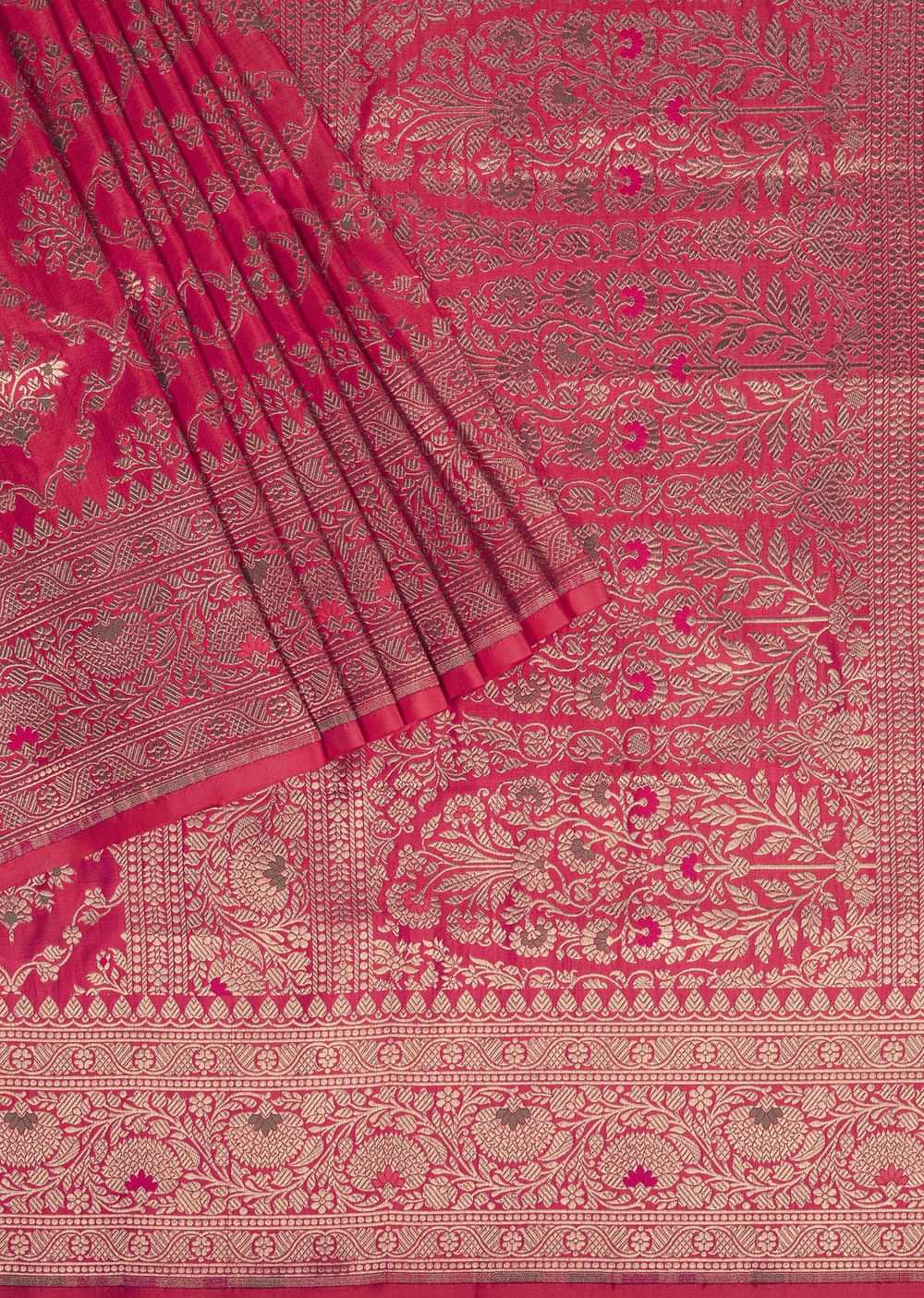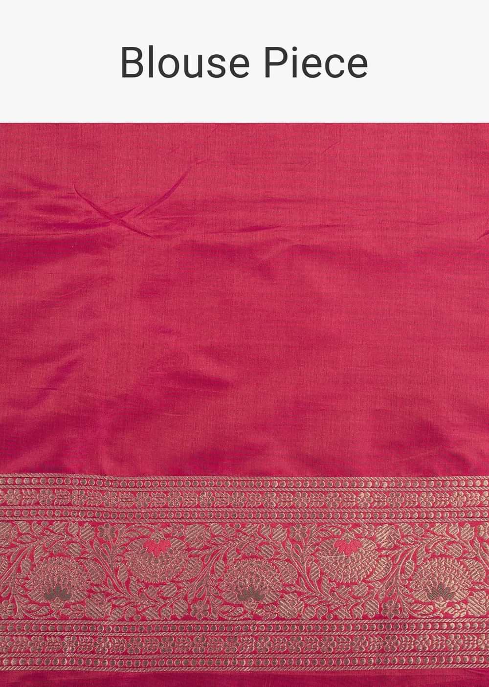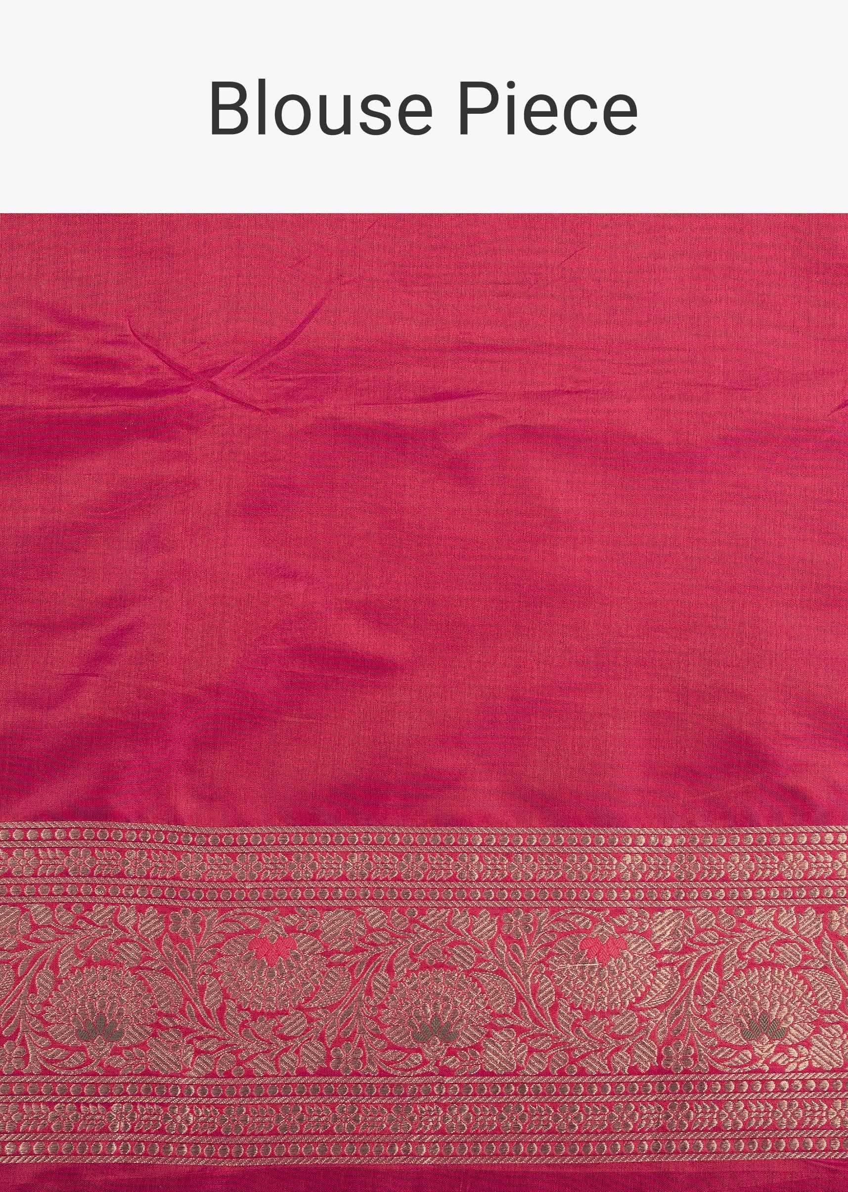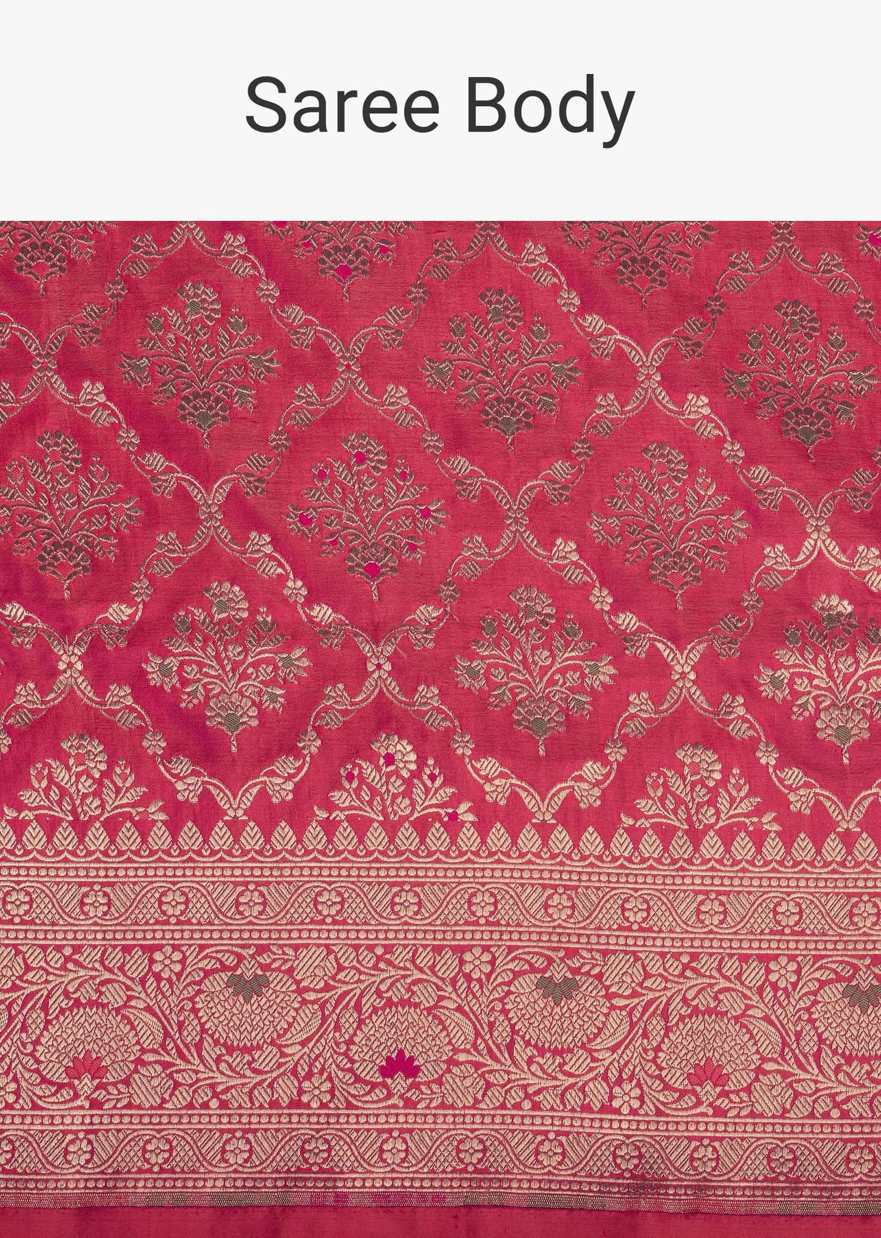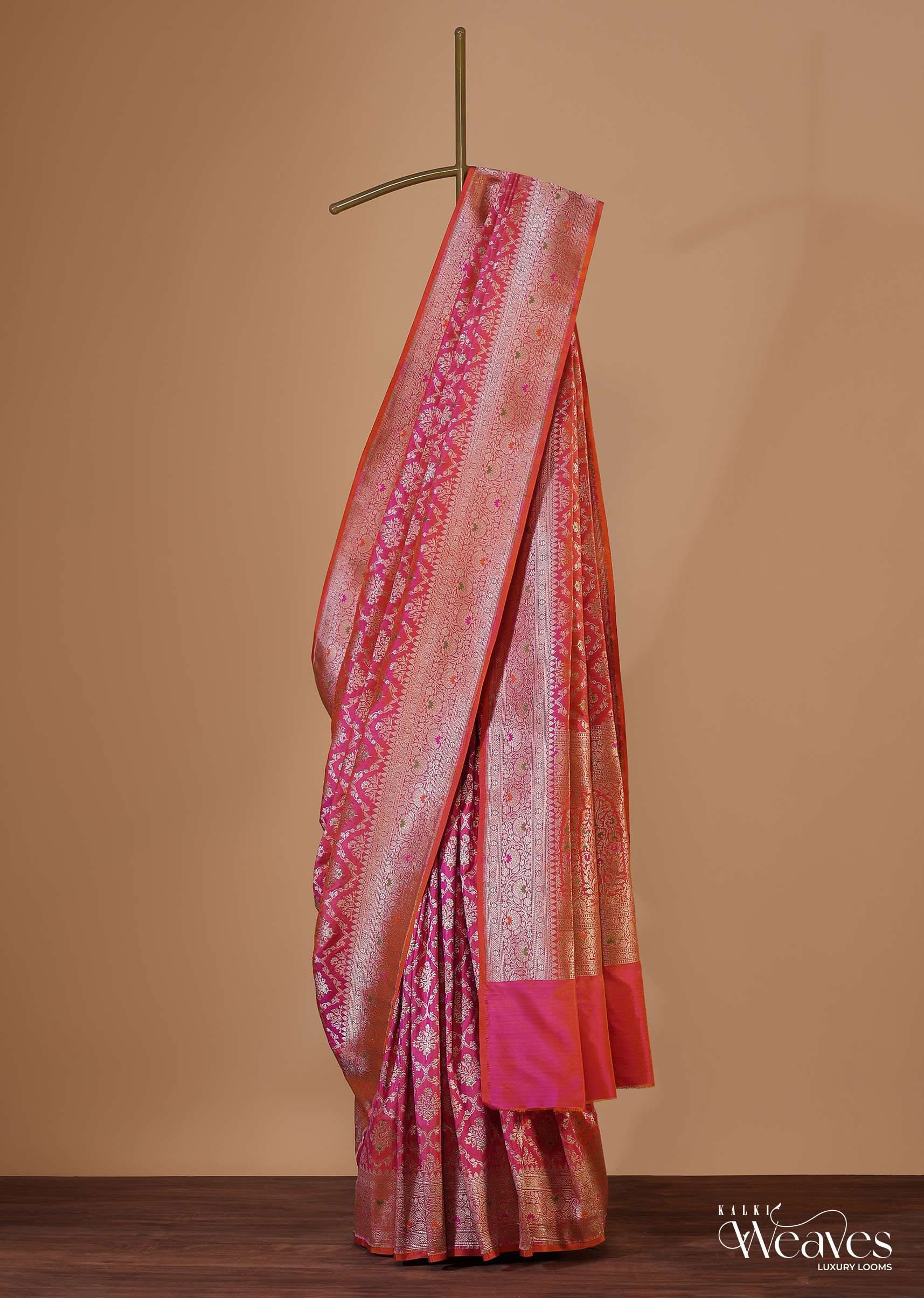 Hot Pink Handloom Saree In Uppada Silk With Meenakari Jaal-Zari Work And Unstitched Blouse