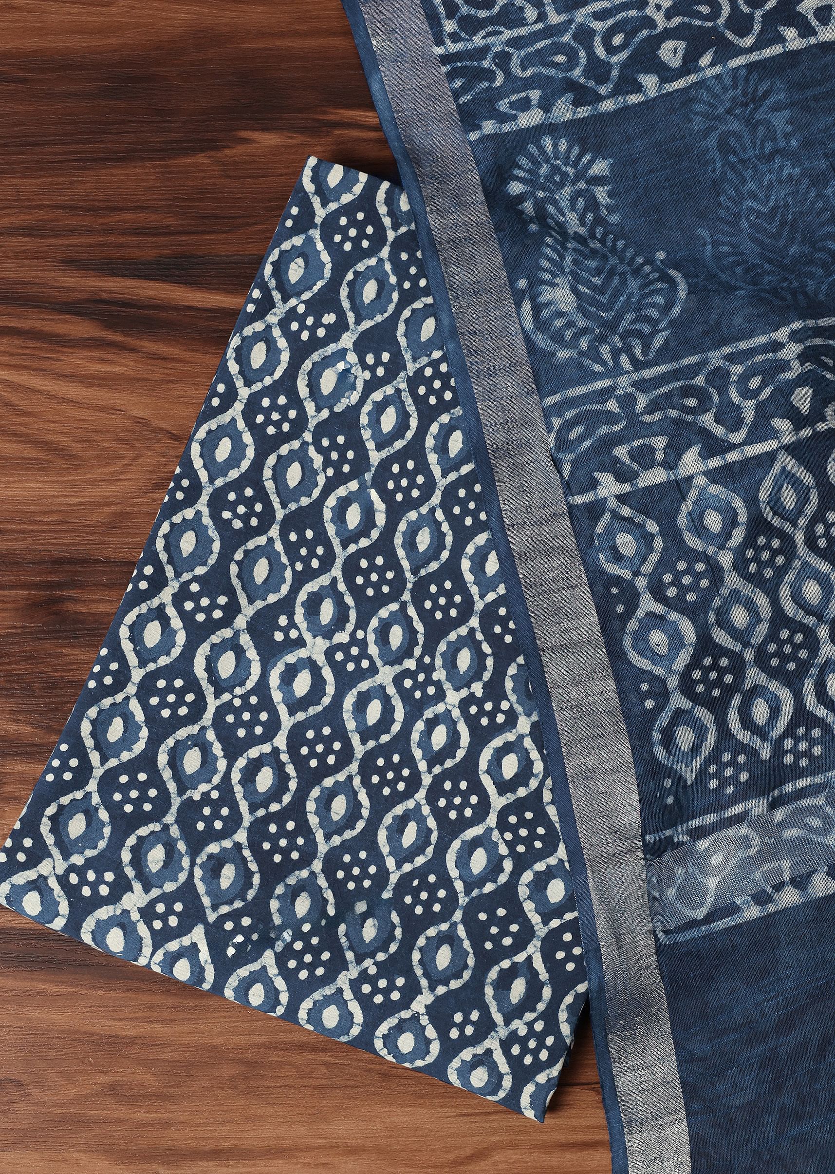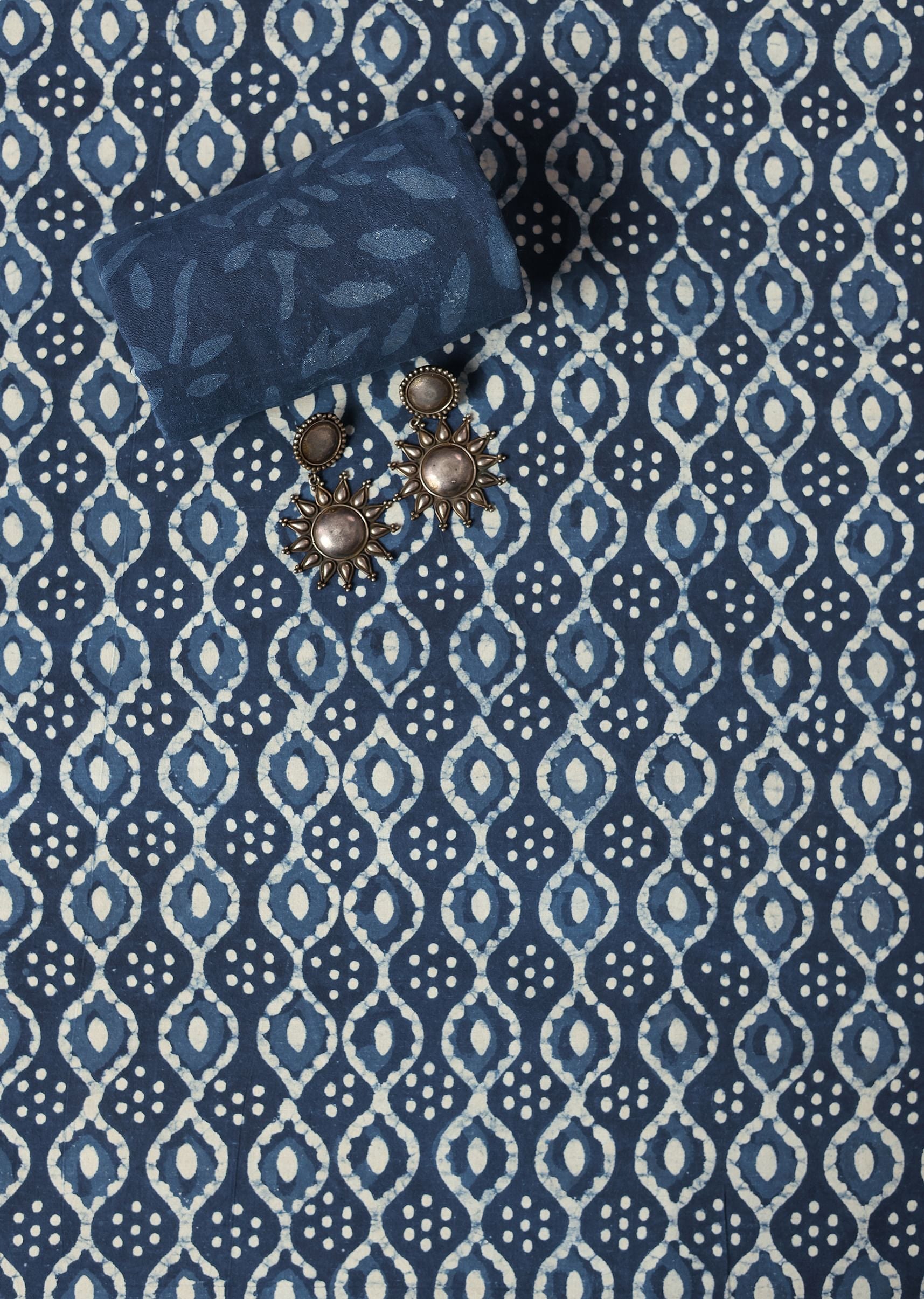 Indigo Batik Hand Block Printed Cotton Dress Material
