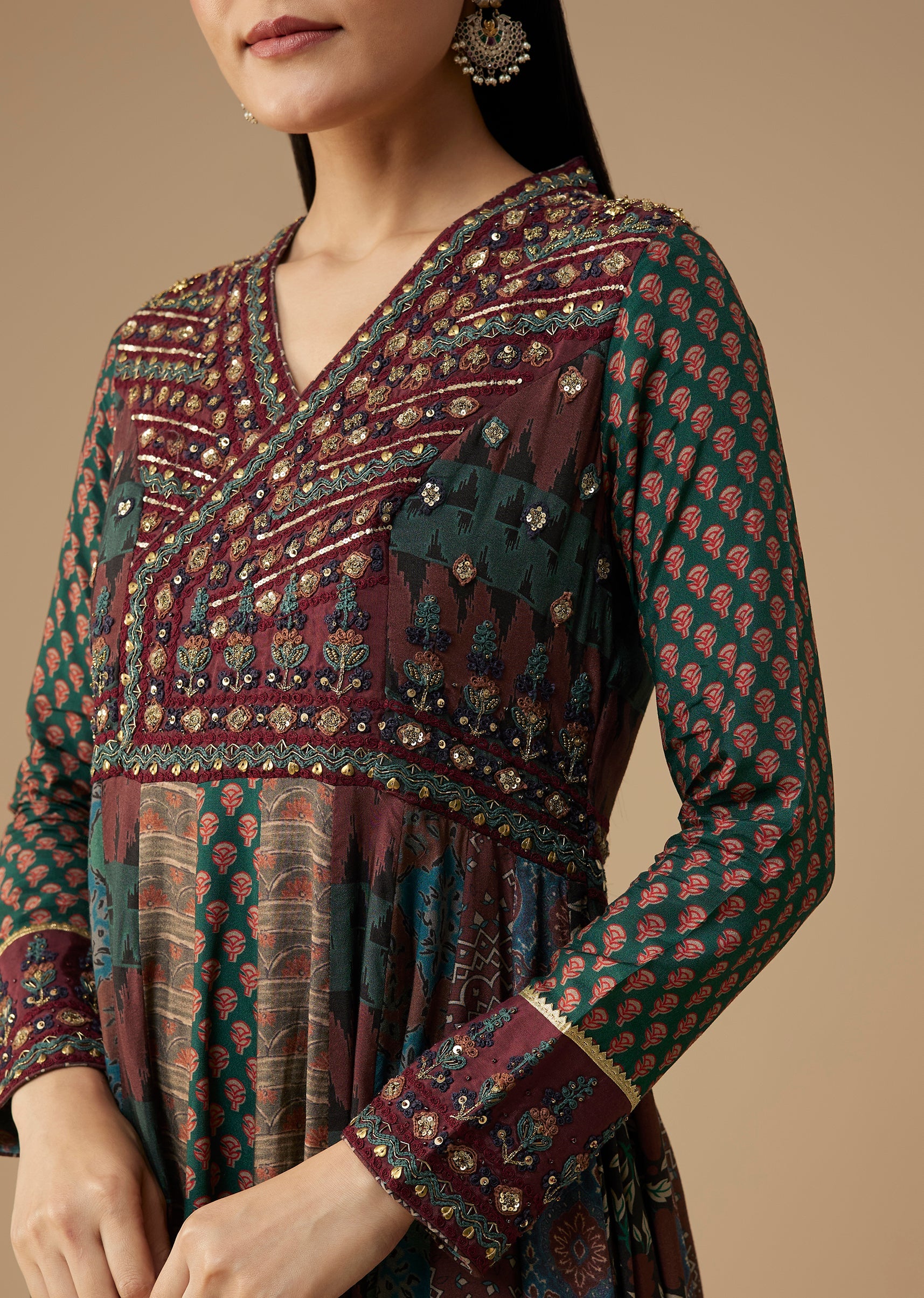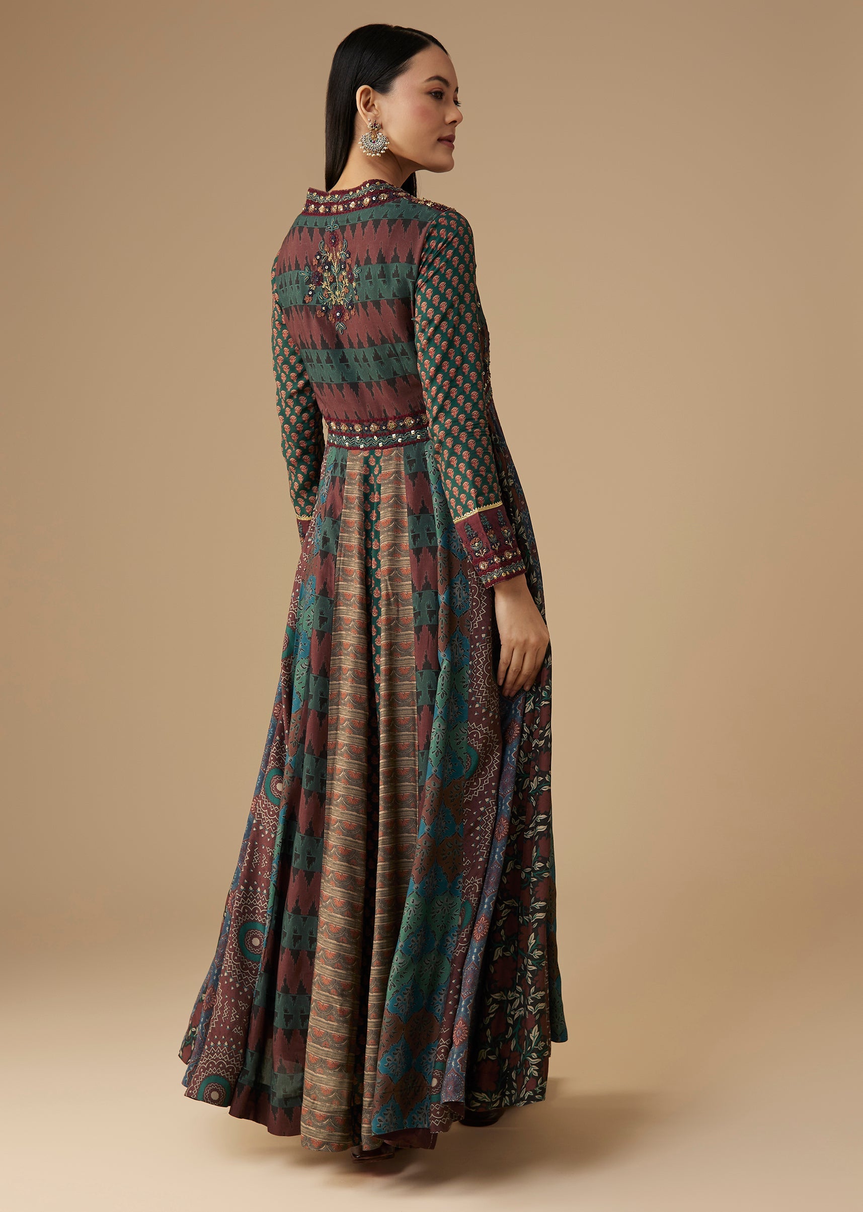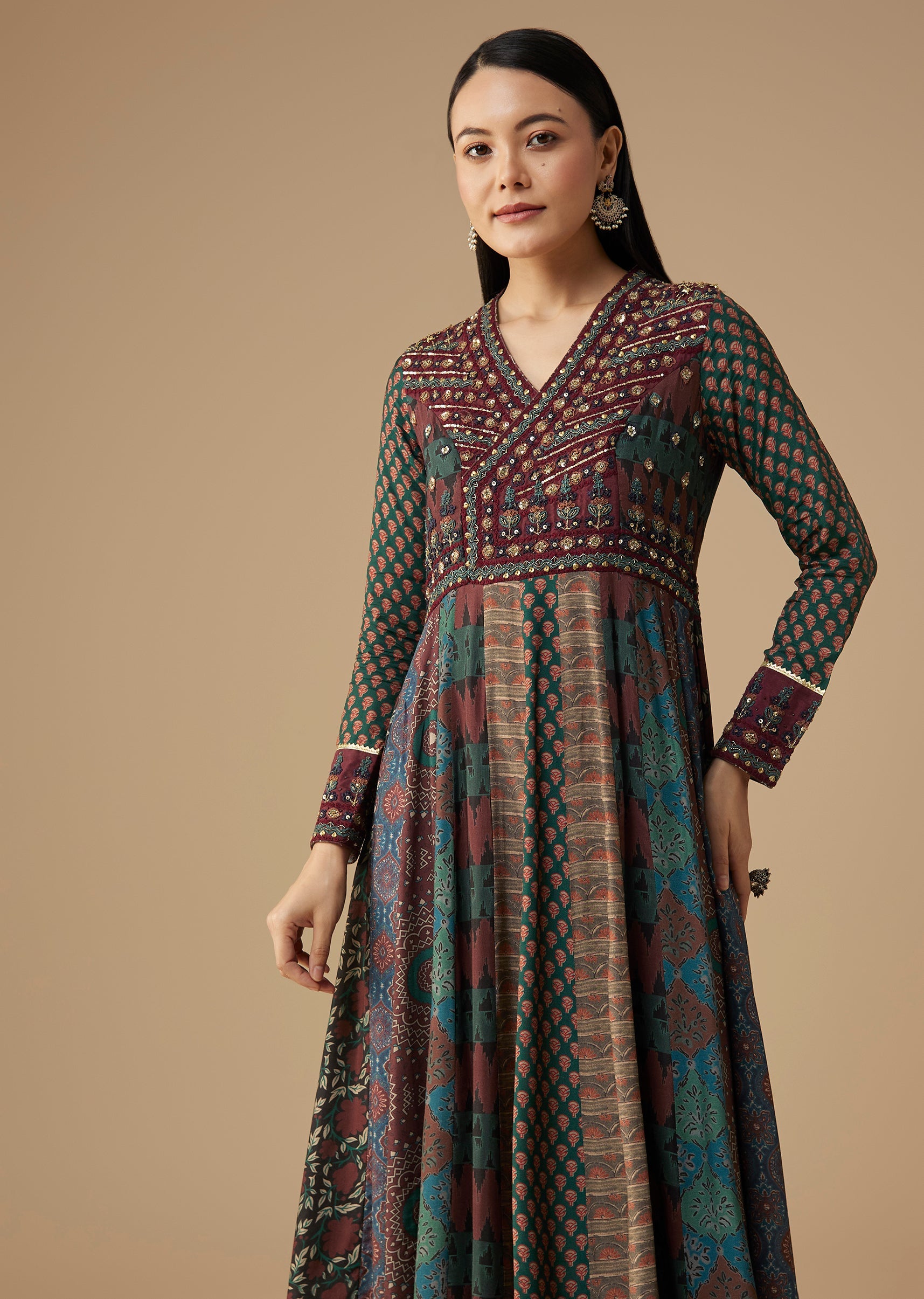 Ensure the bodice fits smoothly at the bust and waist so the anarkali flares evenly for a flattering, elongated silhouette.