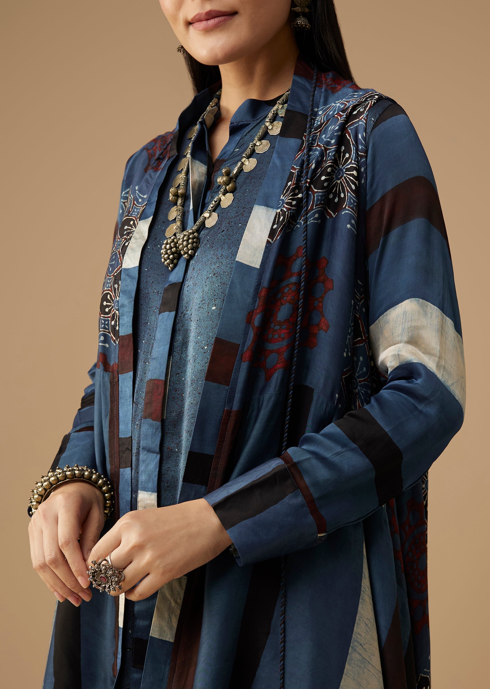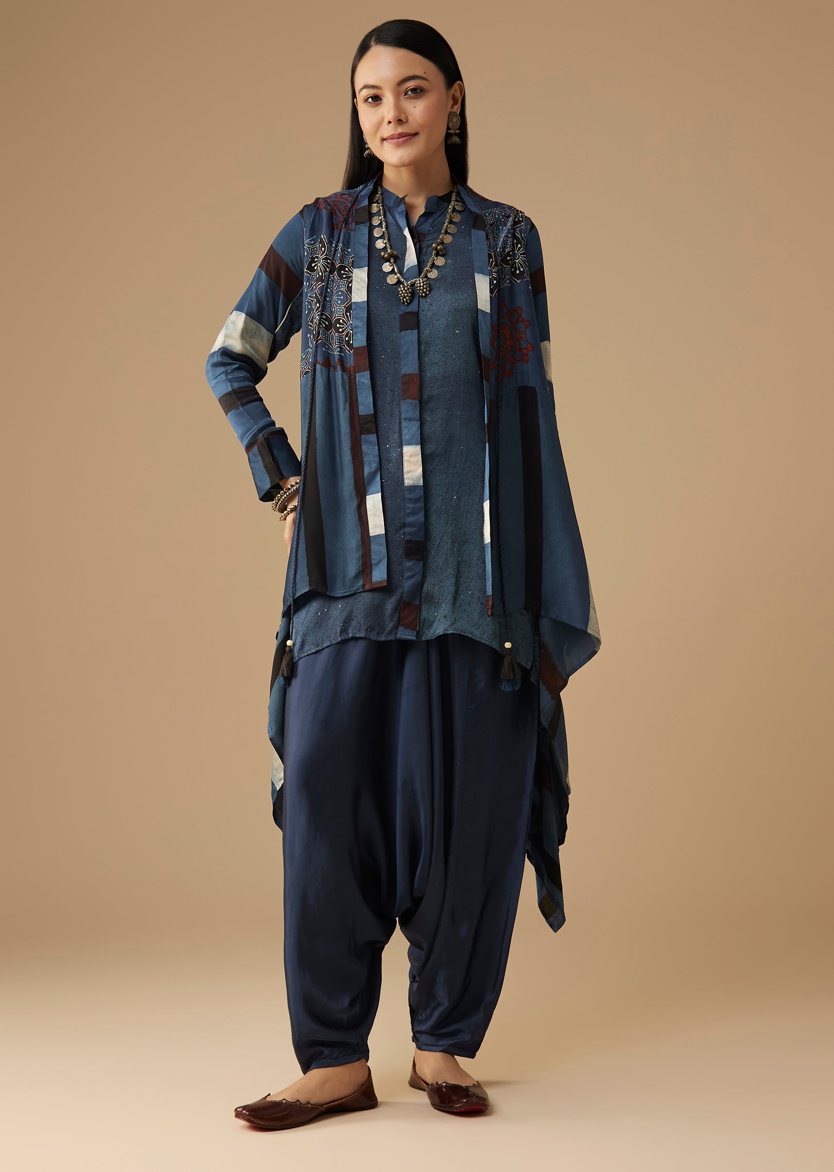 Indigo Hand Dyed Ajrakh Jacket and Dhoti Set