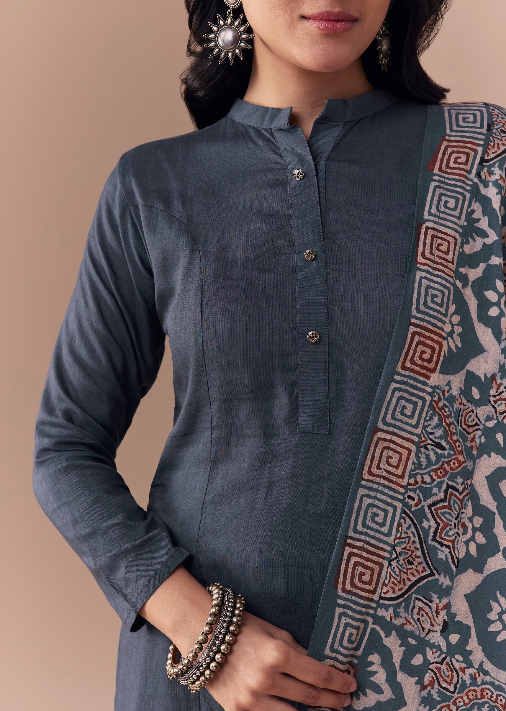 A pop of Ajrak instantly brings artsy, handcrafted charm to this chic everyday set. The bold handblock patterns add personality without overpowering, giving the look an effortless indie edge. Balanced... More Product Details