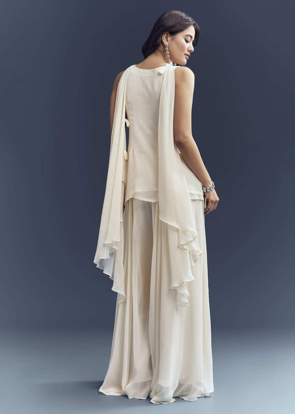 Ivory Georgette Palazzo Suit With Heavy Hand Embroidery