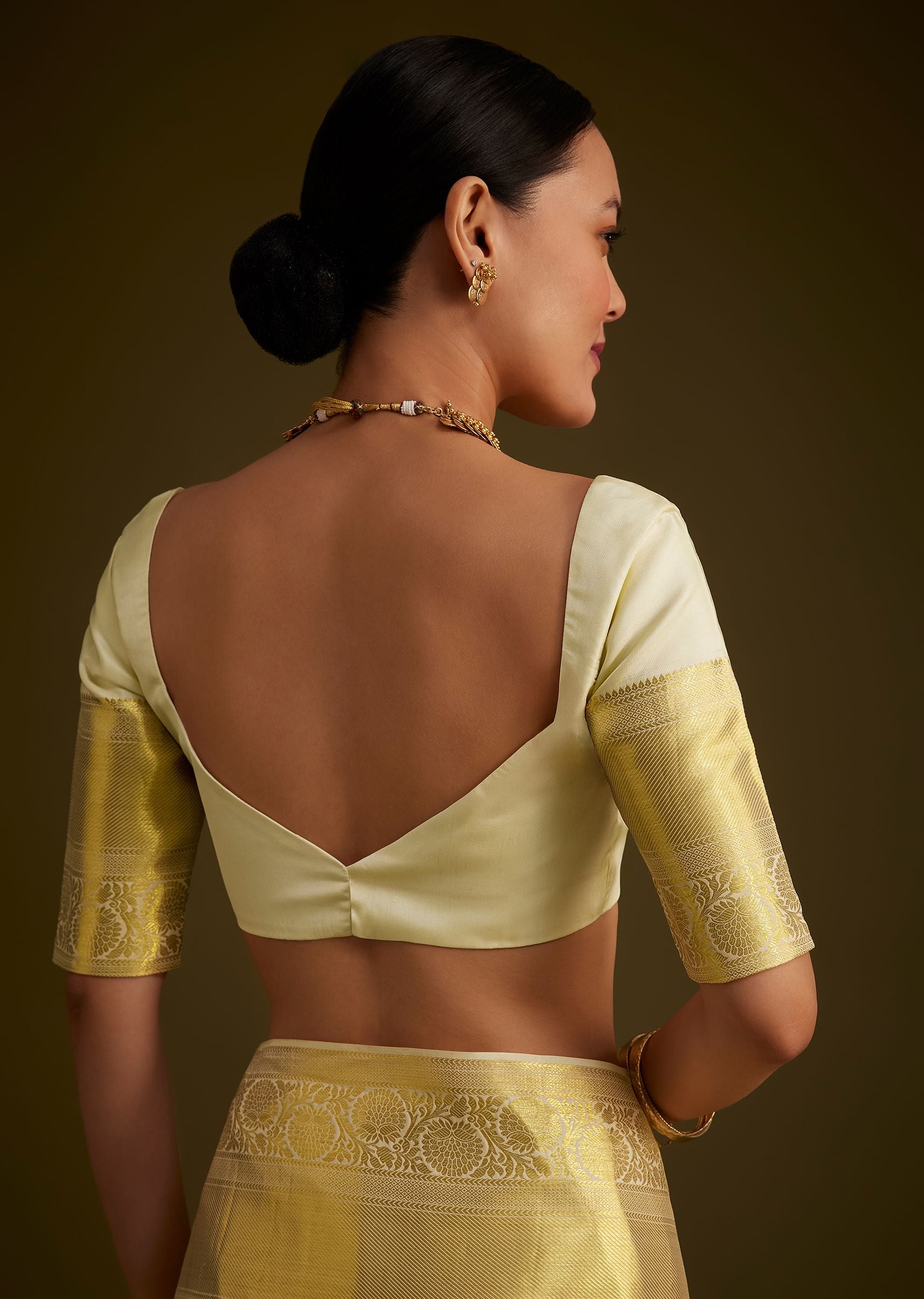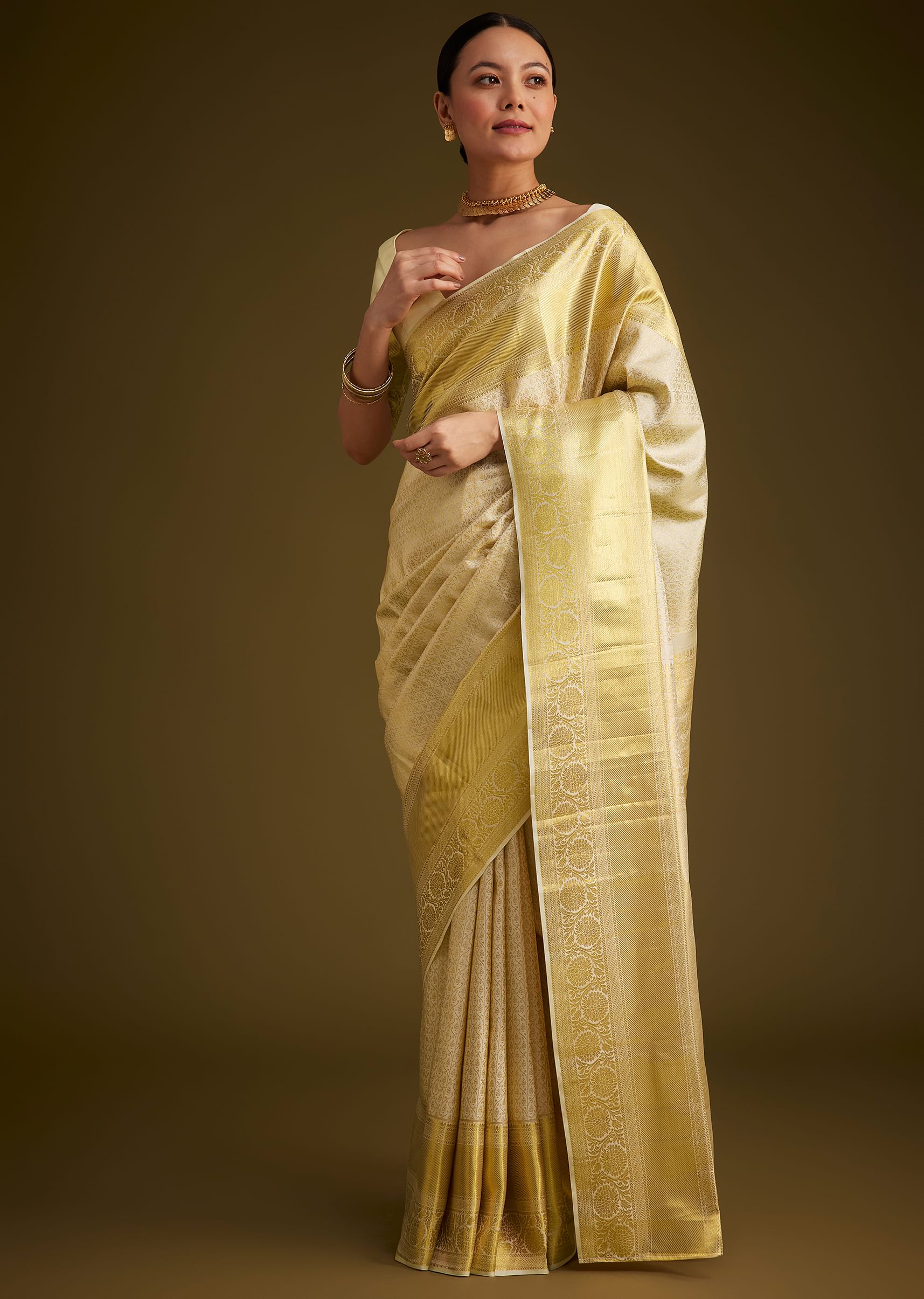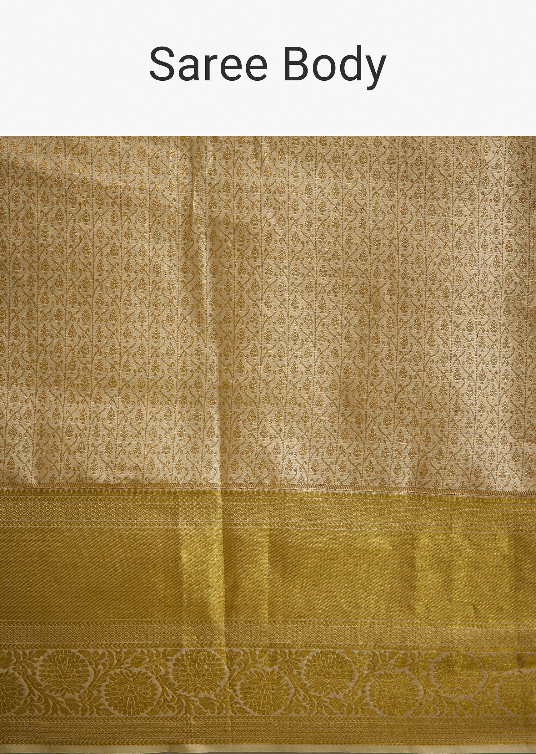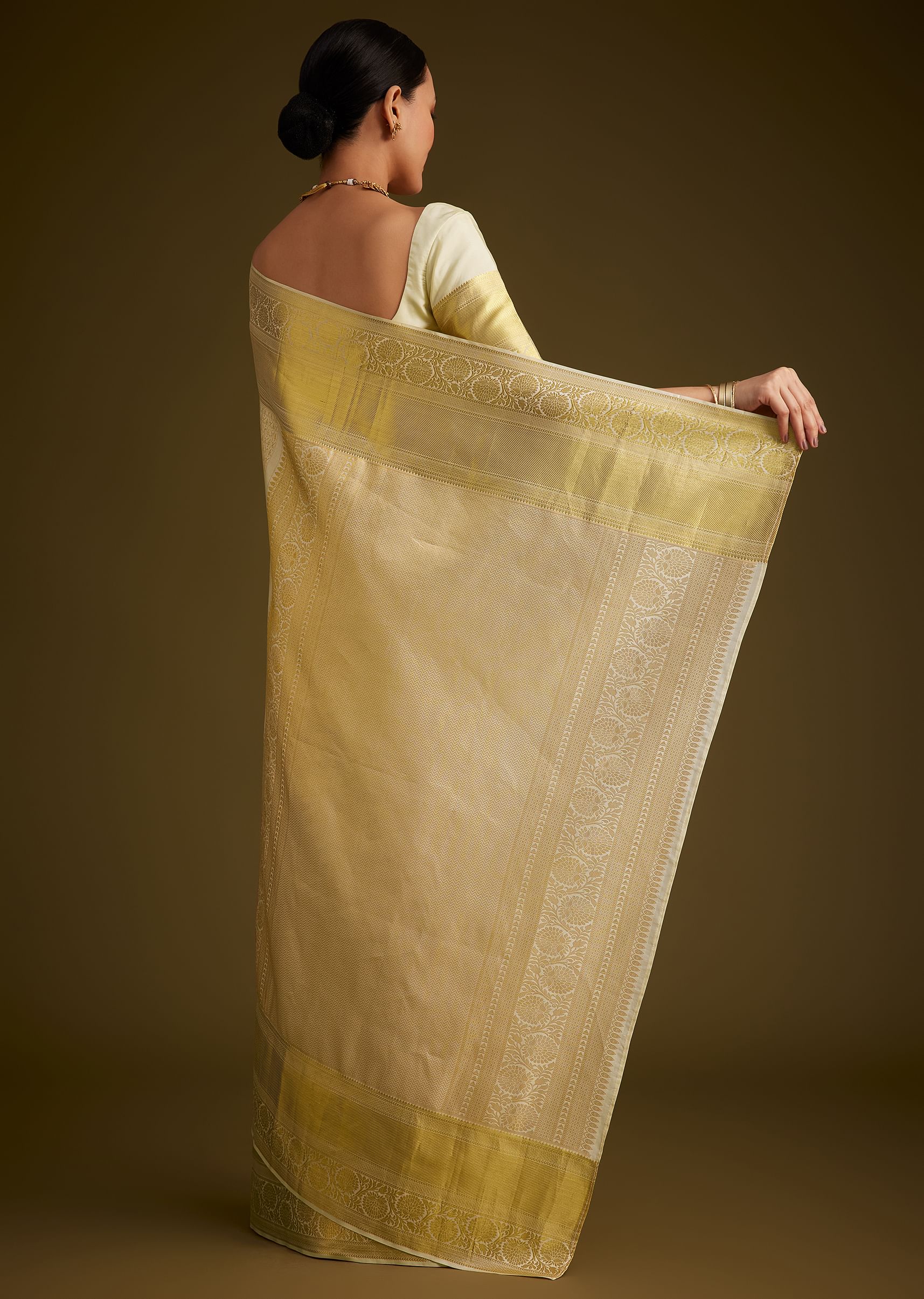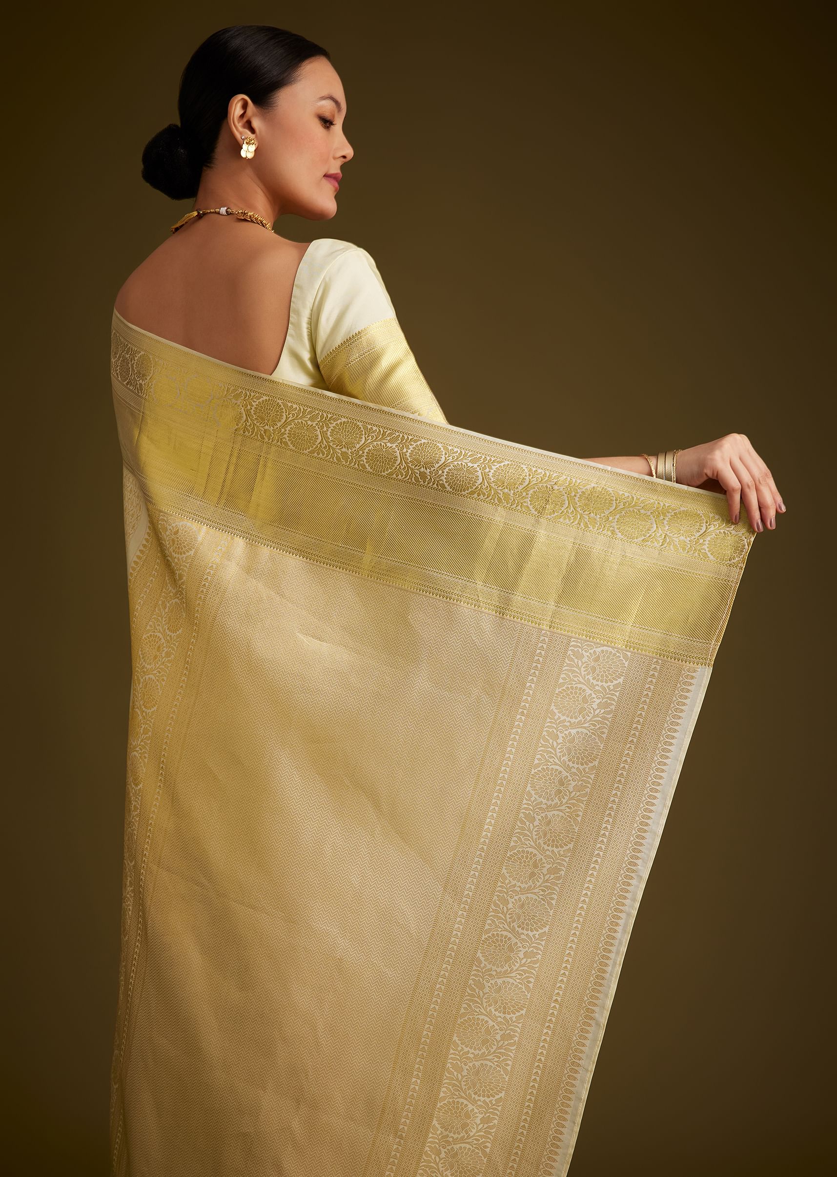 Ivory Kanjivaram Silk Saree With Golden Zari Border