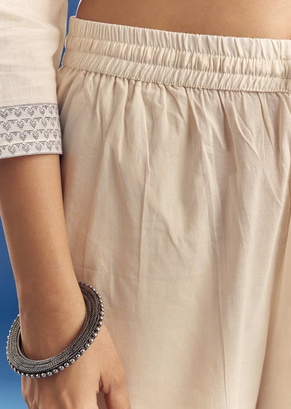 Ivory Mul Cotton Kurta Set With Thread Weaving And Dupatta