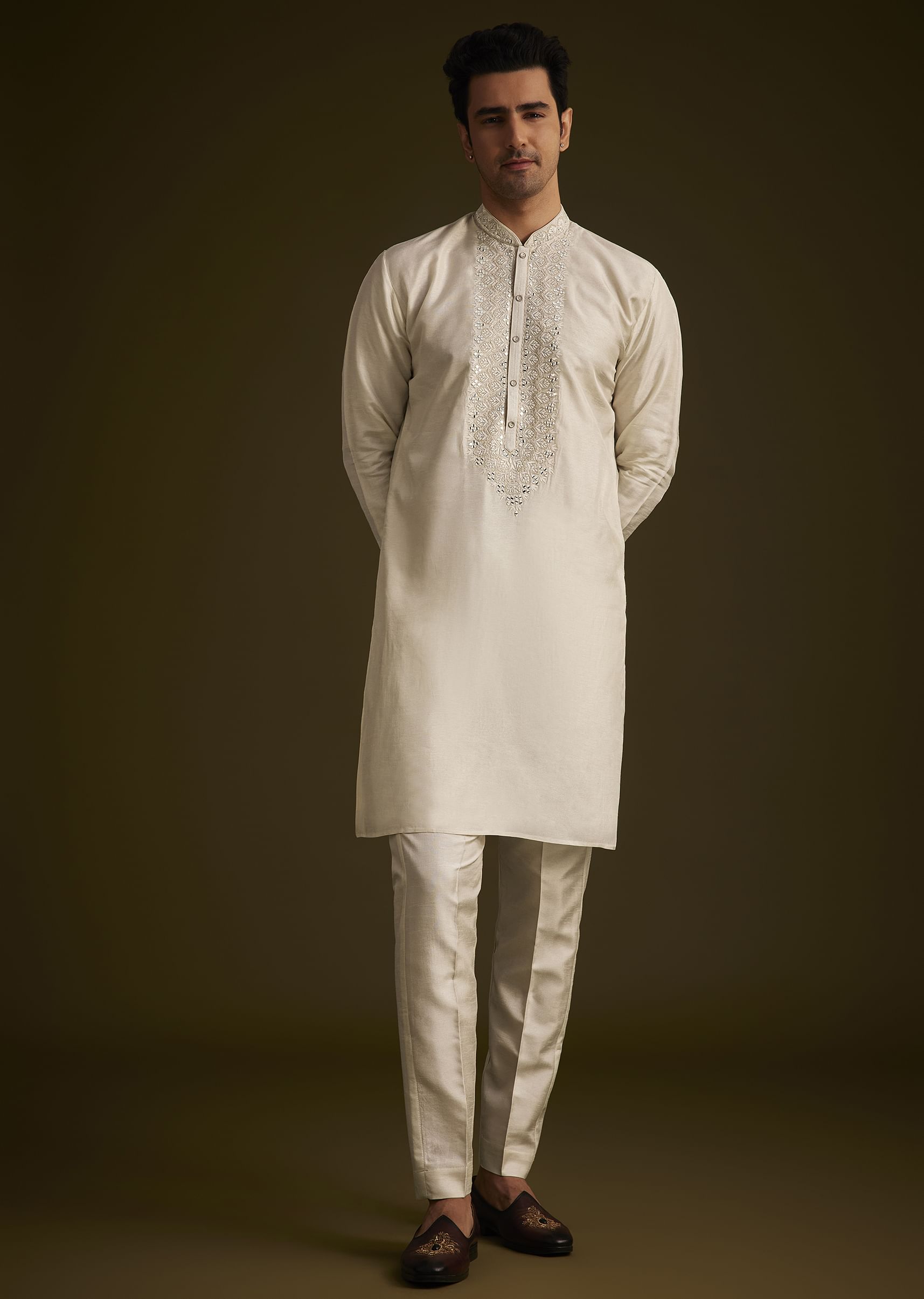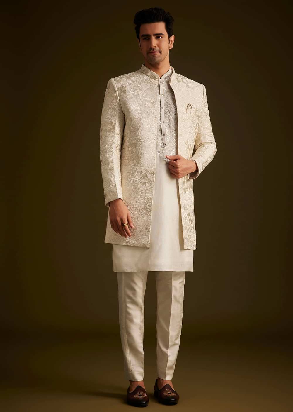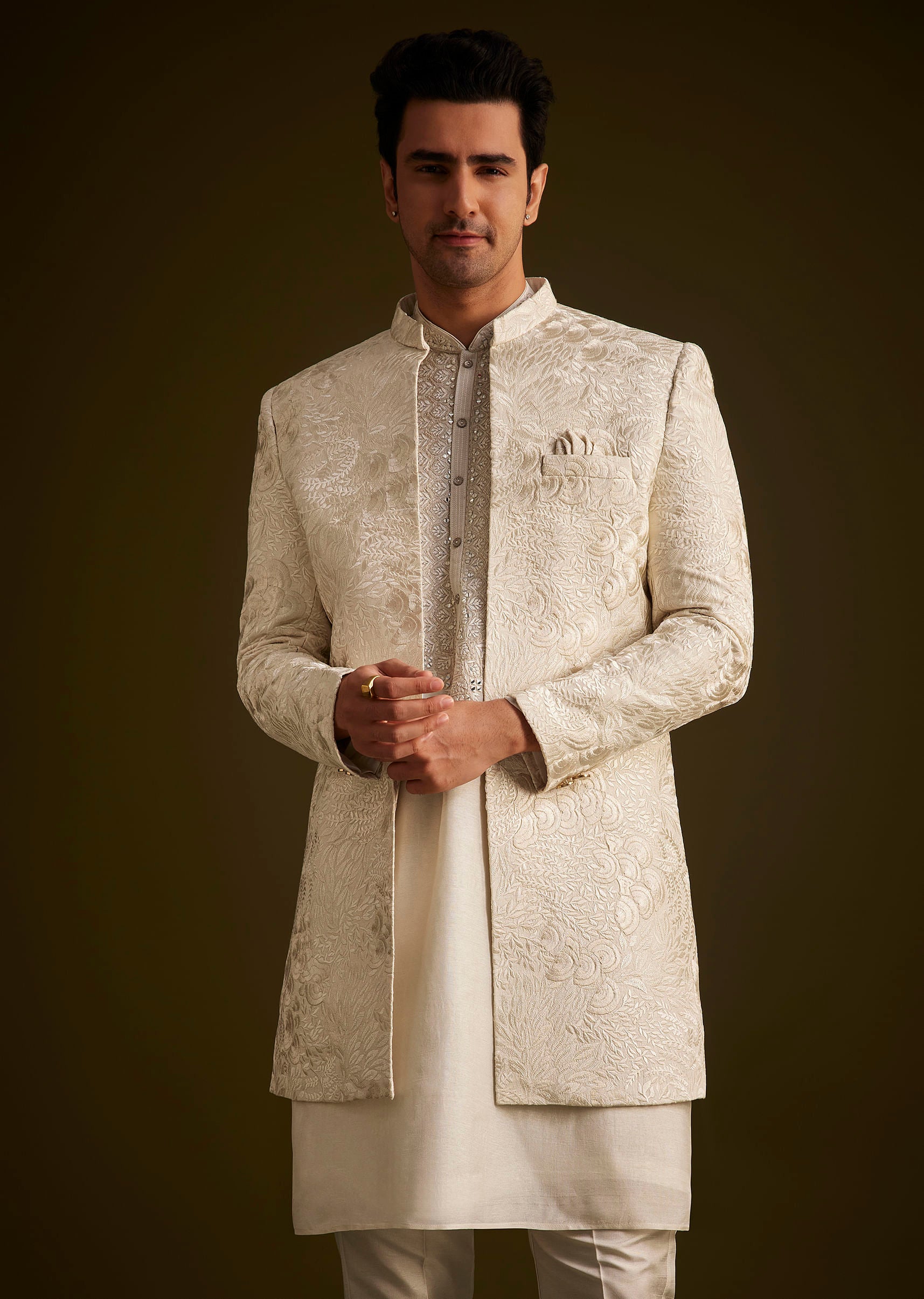 Ivory Silk Sherwani With Intricate Floral Embroidery