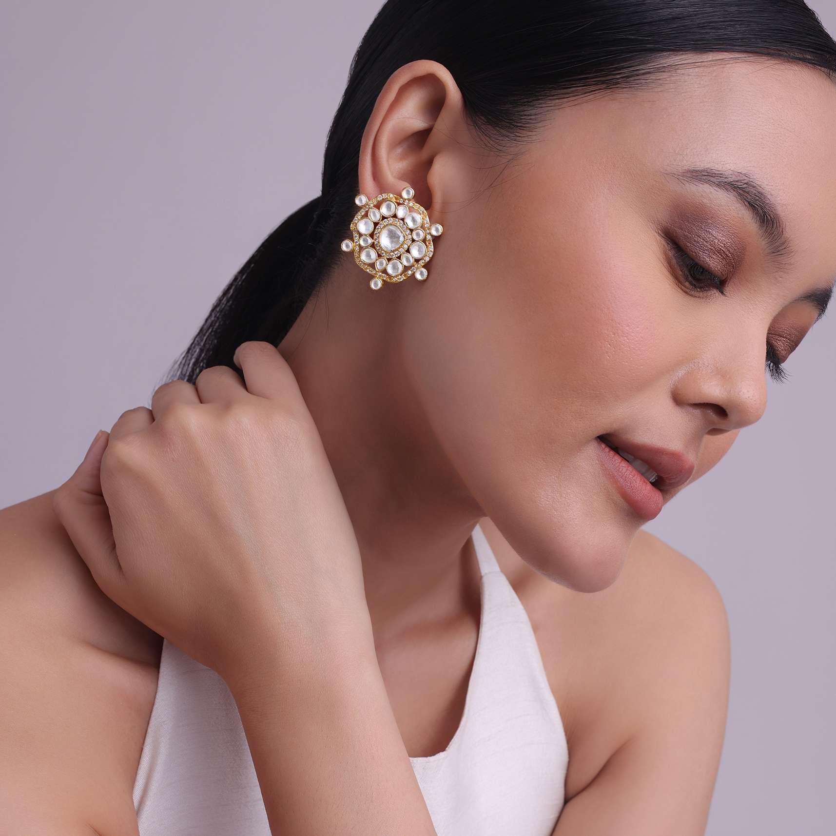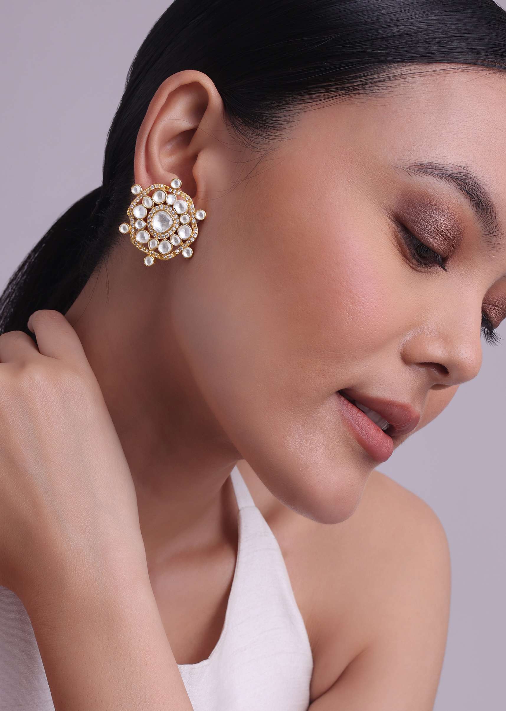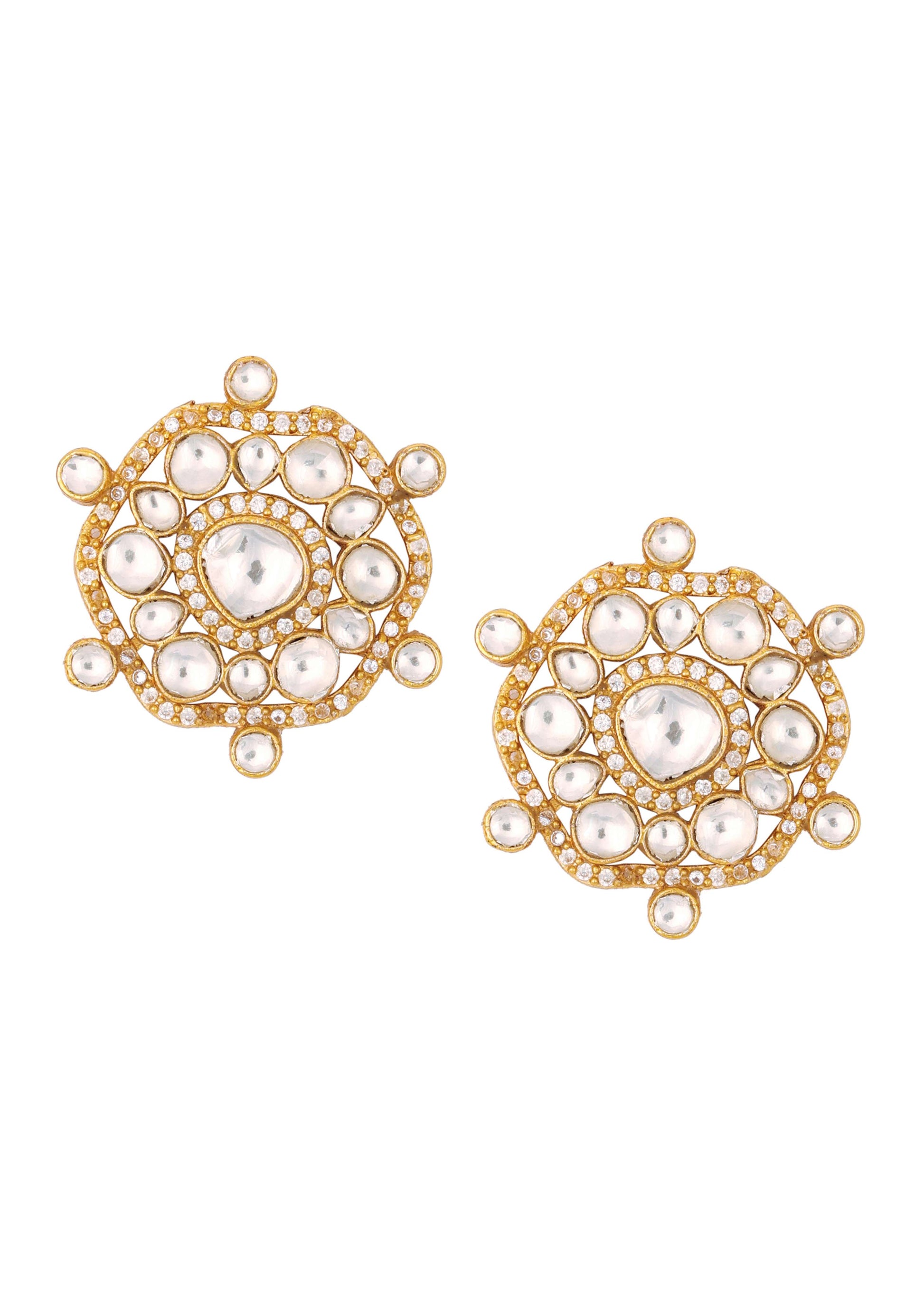 Jadau Kundan Stud Earrings In Gold Finish With Cut Diamonds