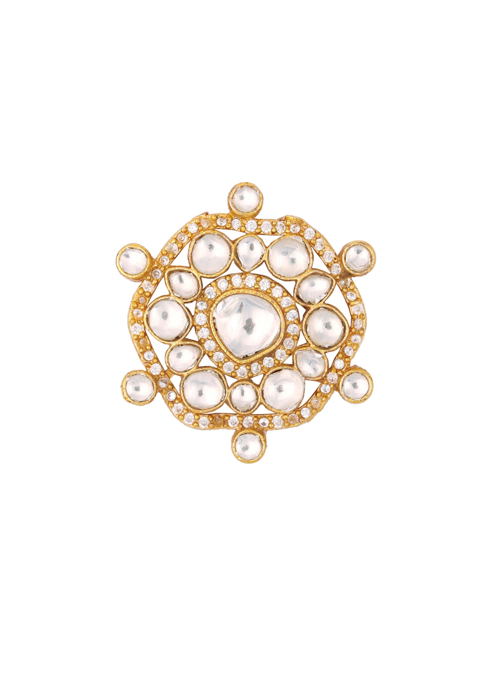 A traditional jadau kundan piece that's sure to take your entire look a notch higher. The jewelry piece is perfect when paired with some traditional and festive outfits, for an ecstatic Indian look with minimal makeup, traditional sarees, or suits to create a breathtaking ethnic look for your upcoming festivities.