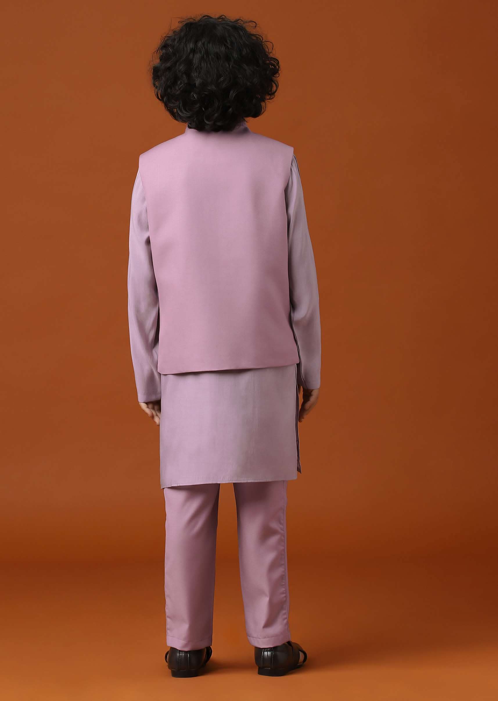 Kalki Mauve Purple Embroidered Kurta Jacket Set For Boys