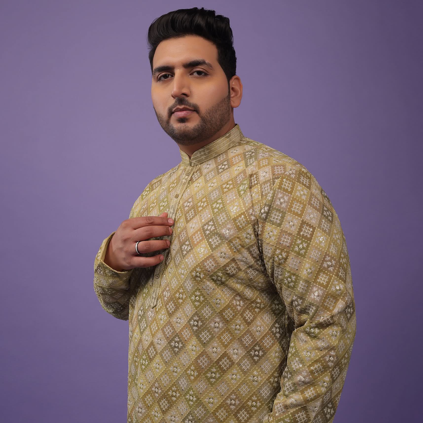 - The kurta comes in a mandarin collar neckline and full sleeves.