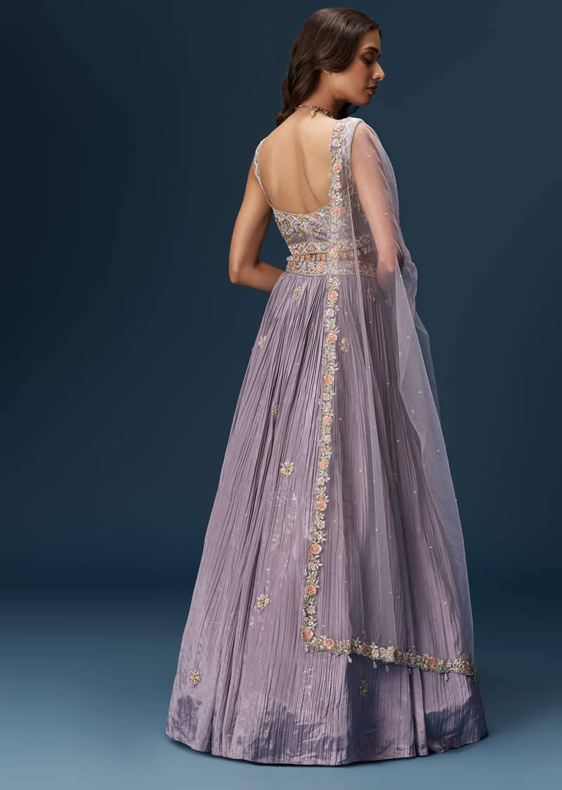 Lavender Bridesmaid Lehenga With Sweetheart Neckline Blouse And Embroidered Dupatta