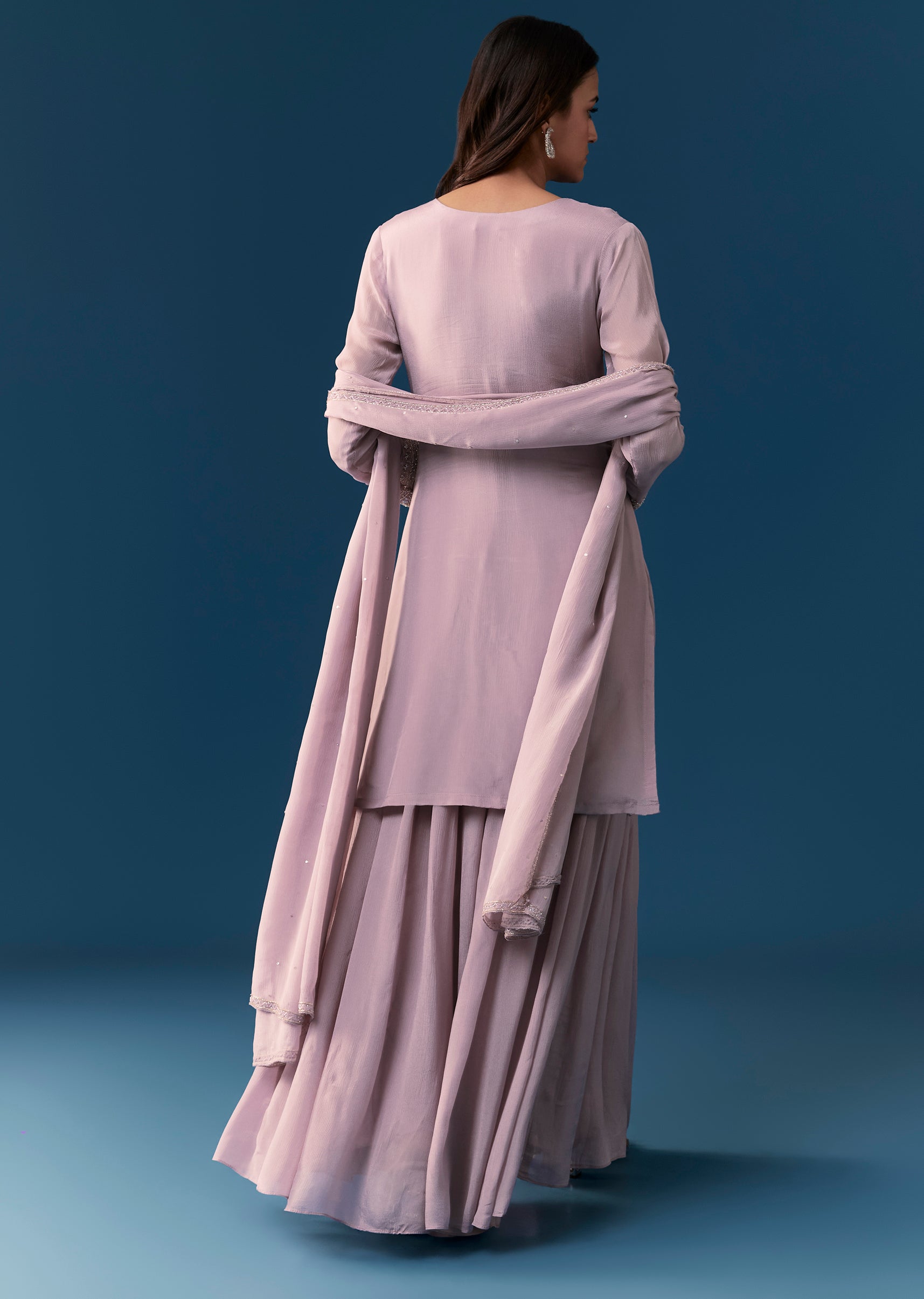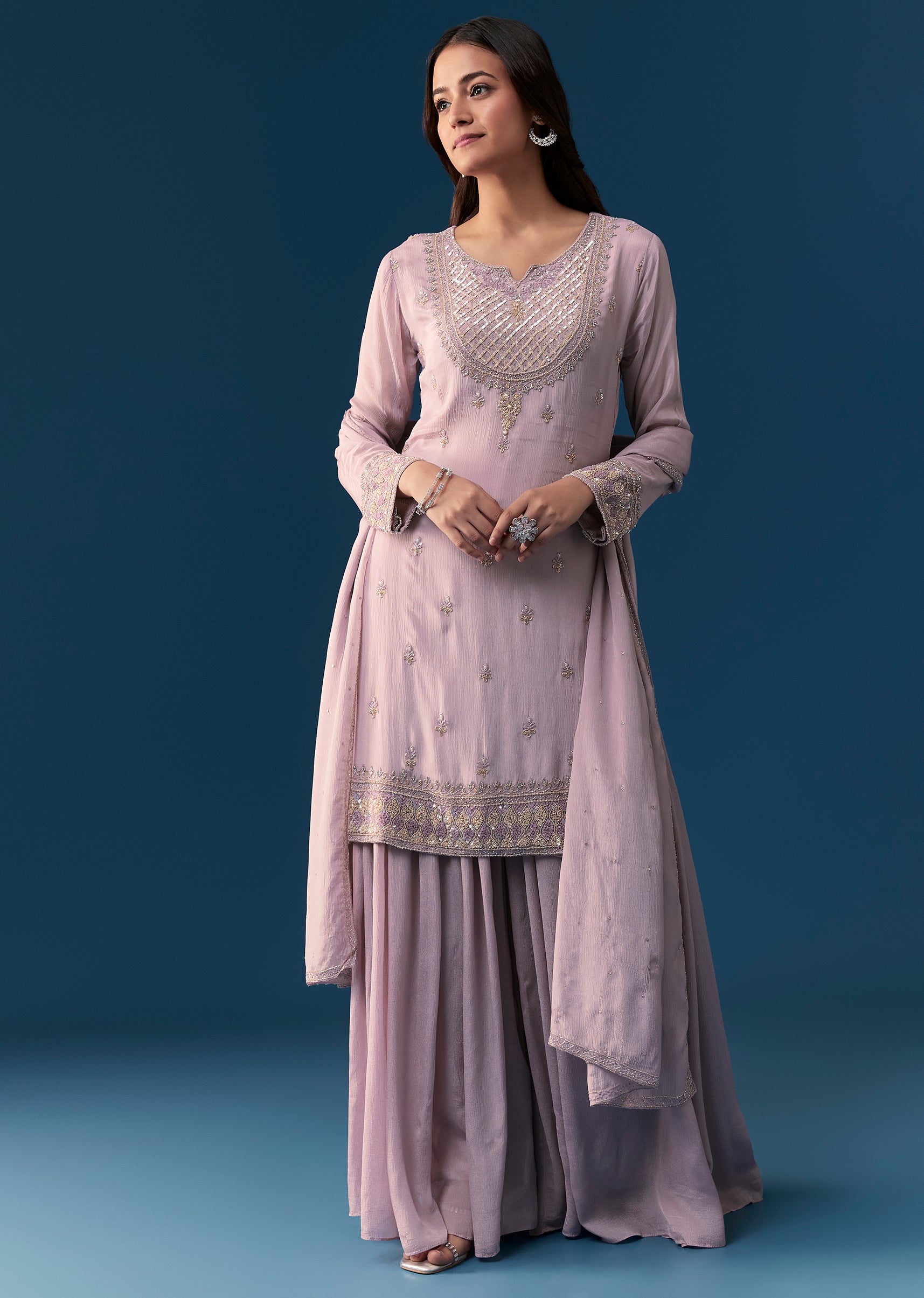 Lavender Chinon Palazzo Set With Sequins And Stone Work.