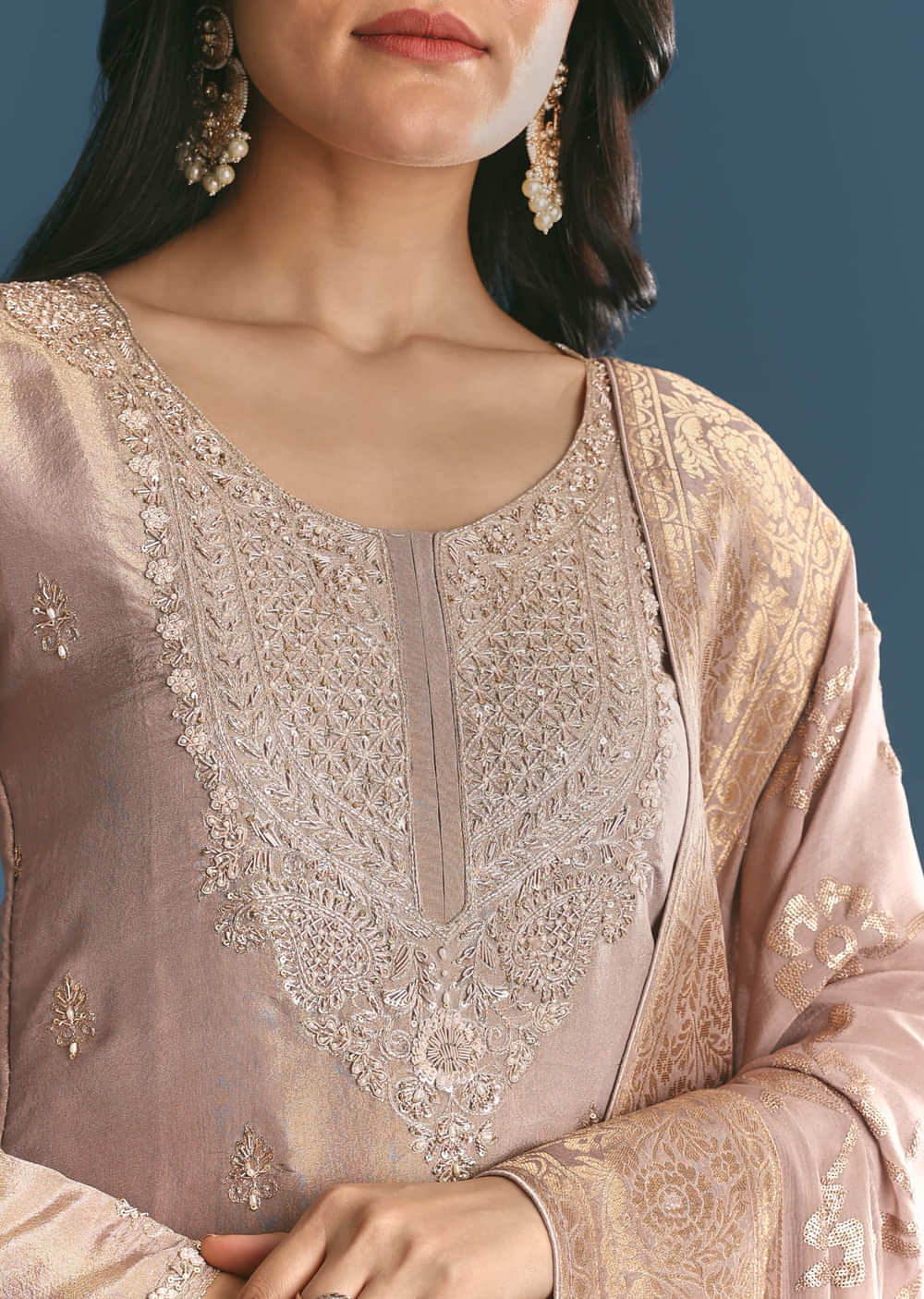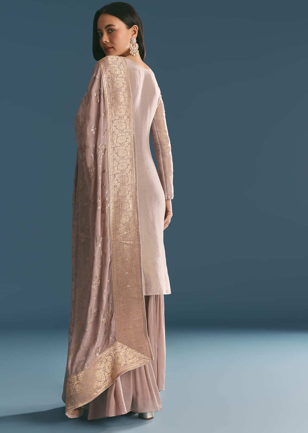 Crafted in soothing lavender tissue fabric, this kurta glistens with moti and cut dana embroidery. Perfect for festive gatherings, its subtle shine adds an ethereal glow. A pastel dream for... More Product Details