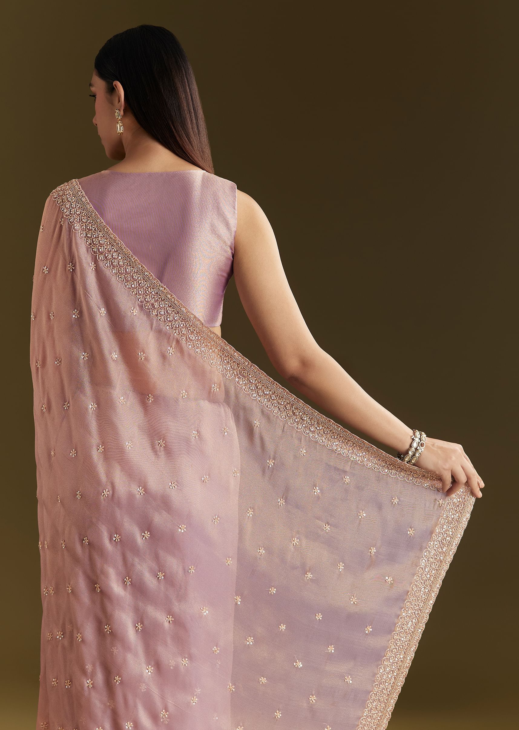 Lavender Tissue Silk Embroidered Saree With Scallop Border